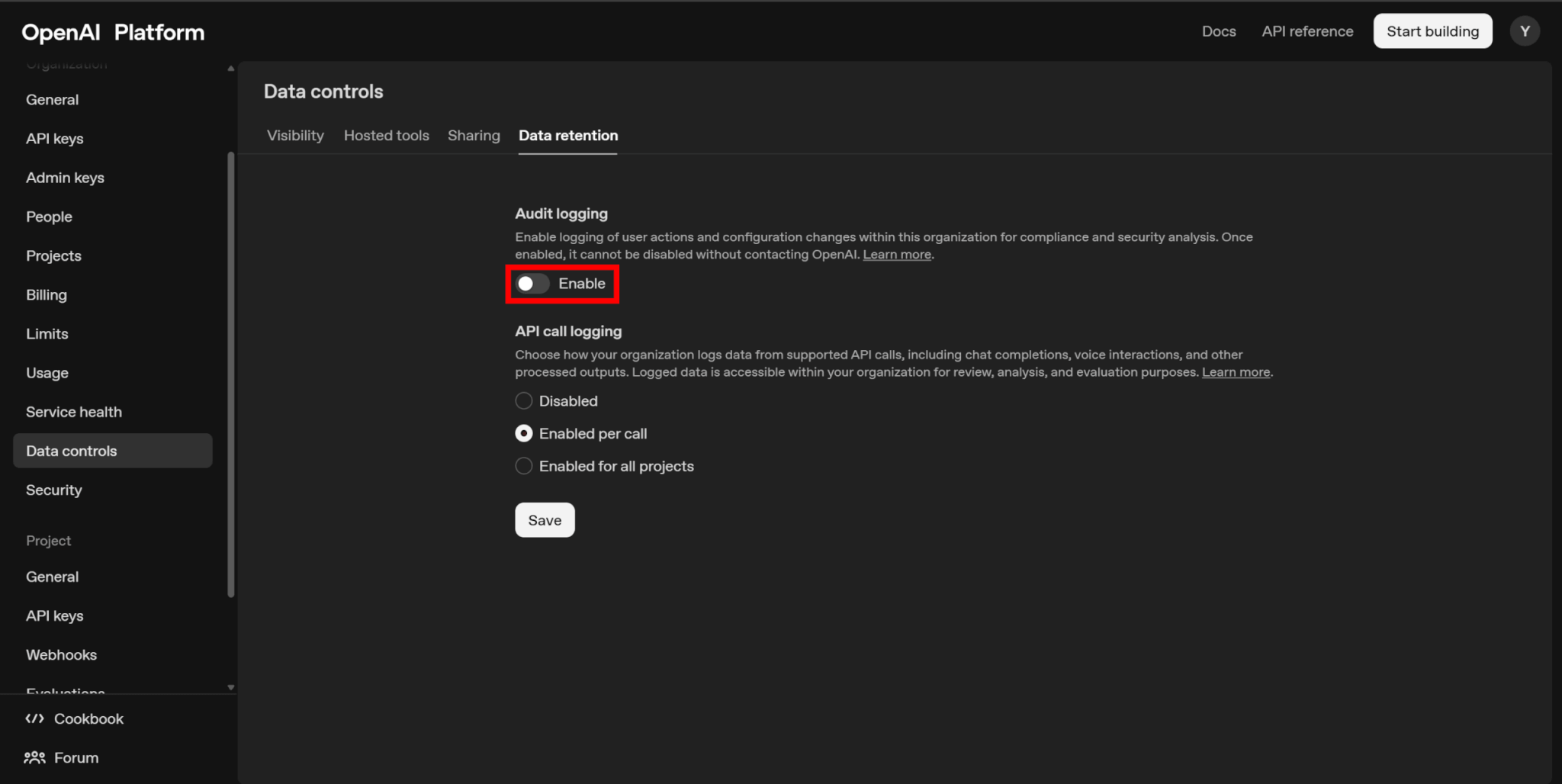 組織のオーナーがデータコントロール設定でログ記録を有効にすることで、監査ログを取れるようになります。