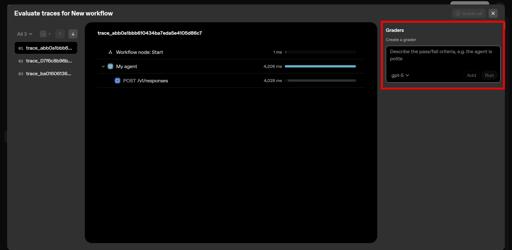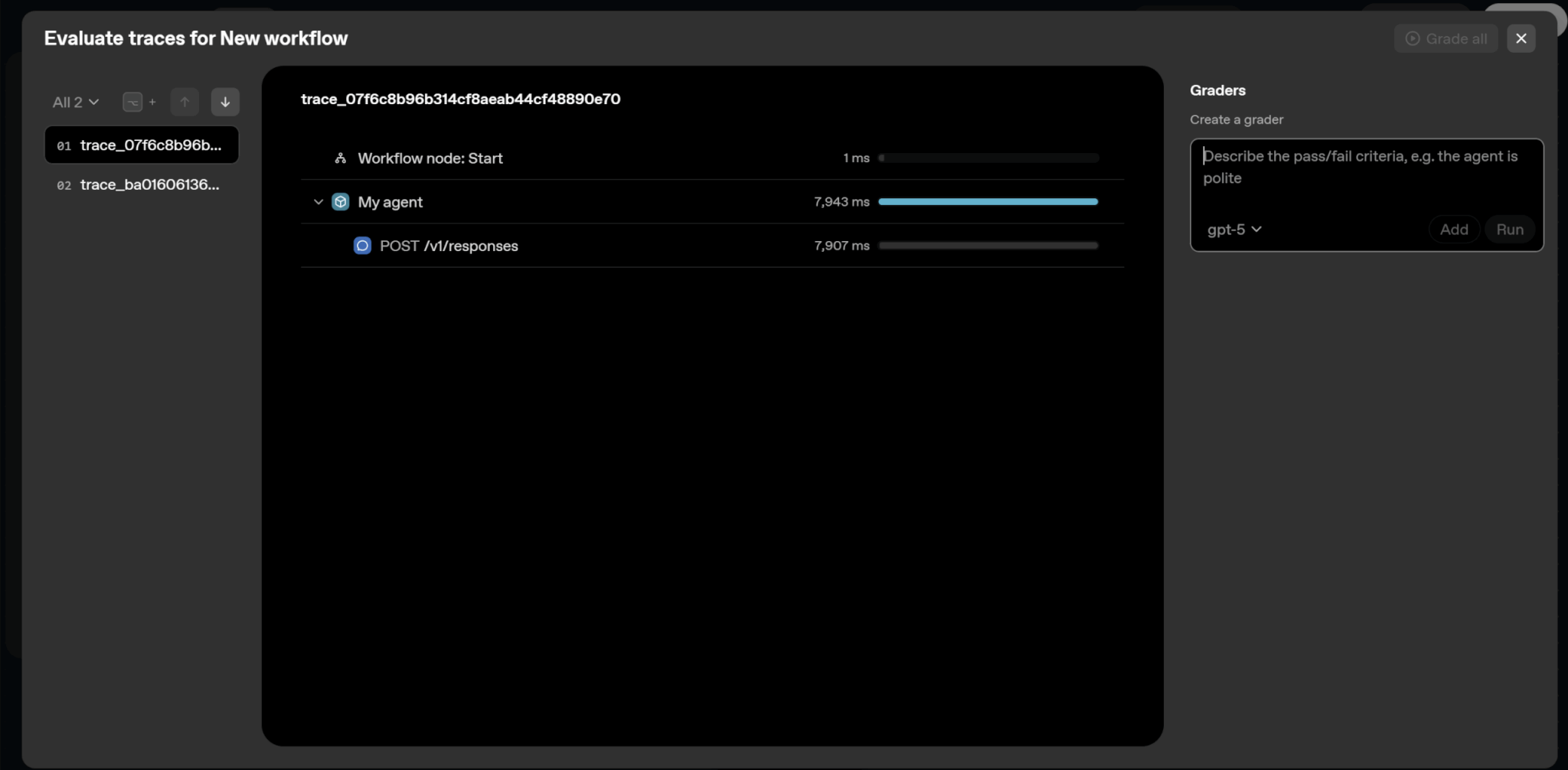 エージェントが実行した一連の動作の記録であるトレースを評価でき、ワークフローのどこでミスがあるかを見ることが可能です。
