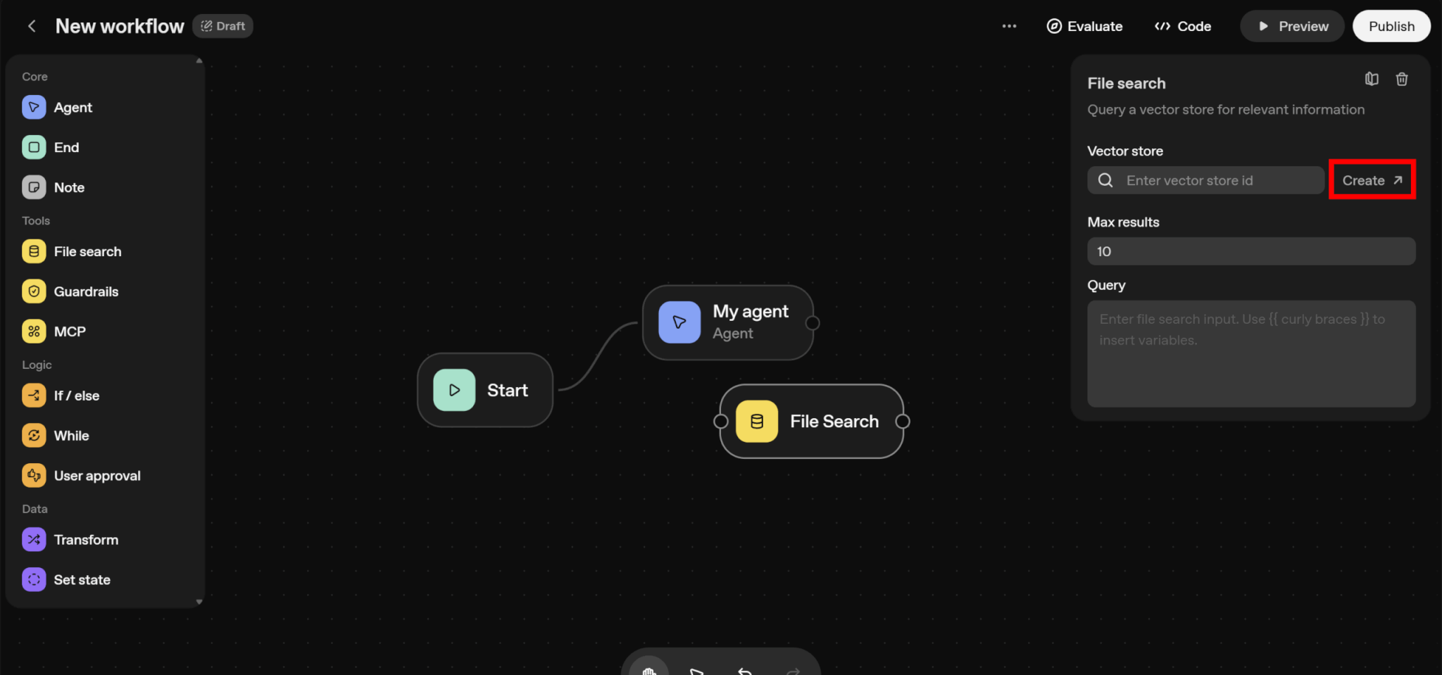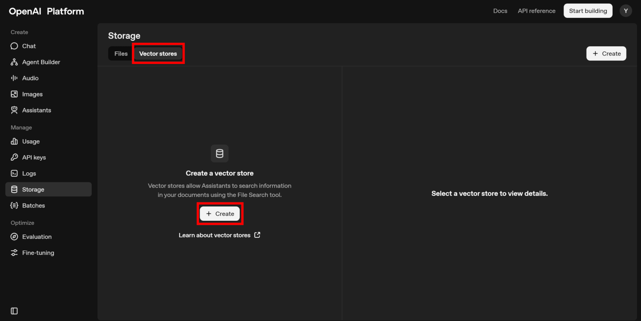 vector storeにファイルをアップロードすることで、エージェントが情報を検索可能になります。