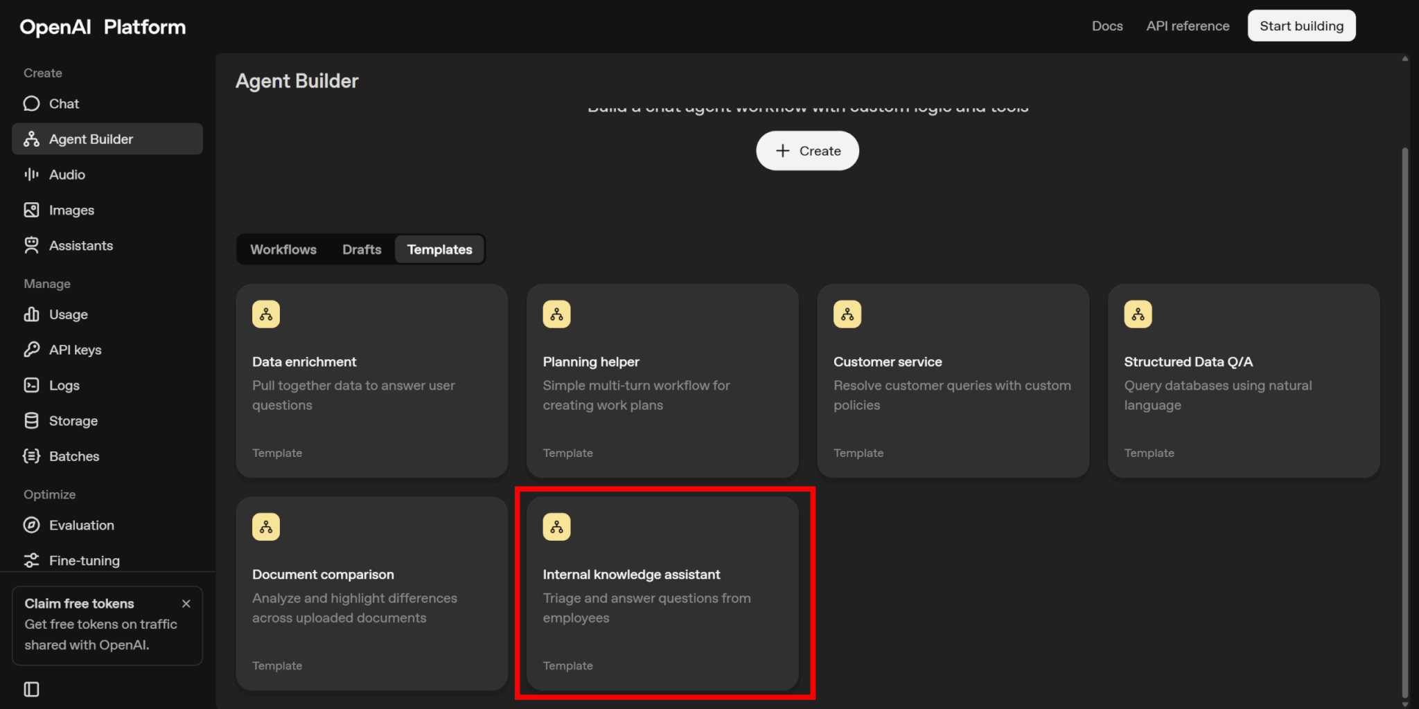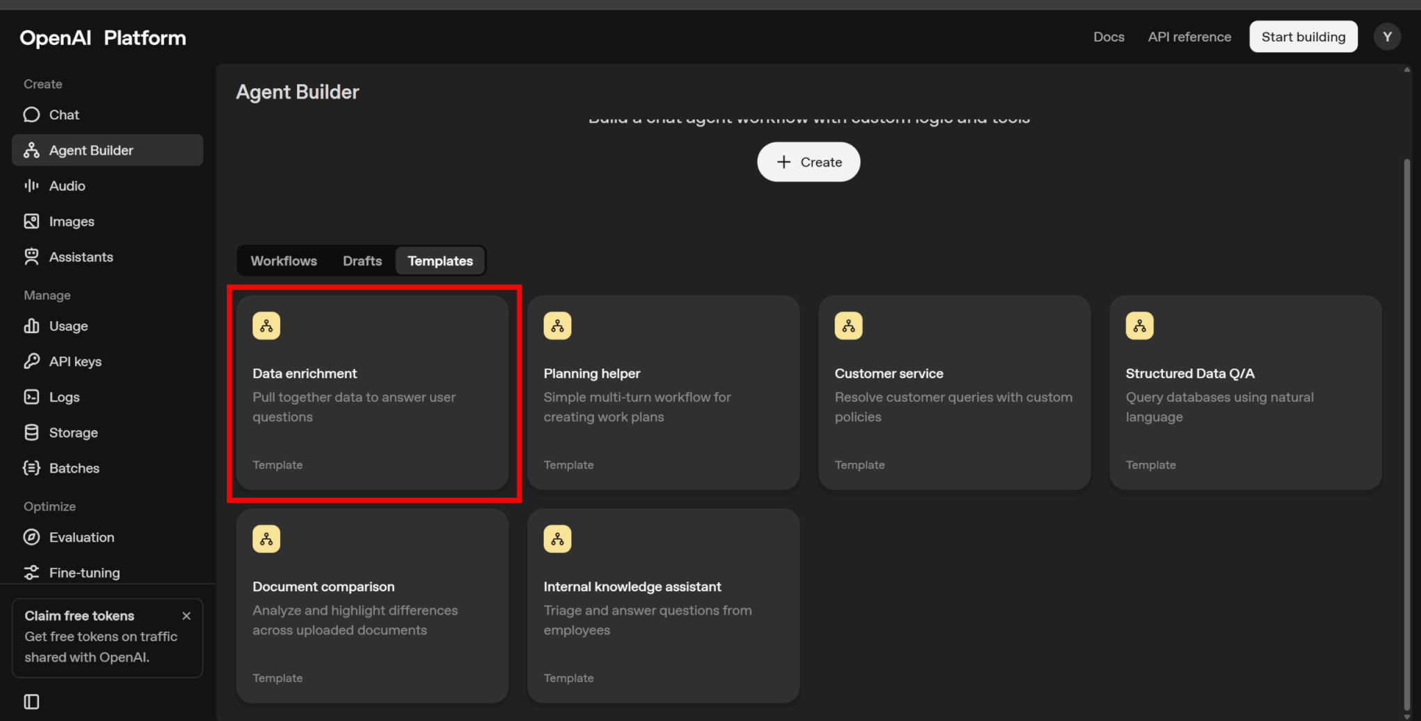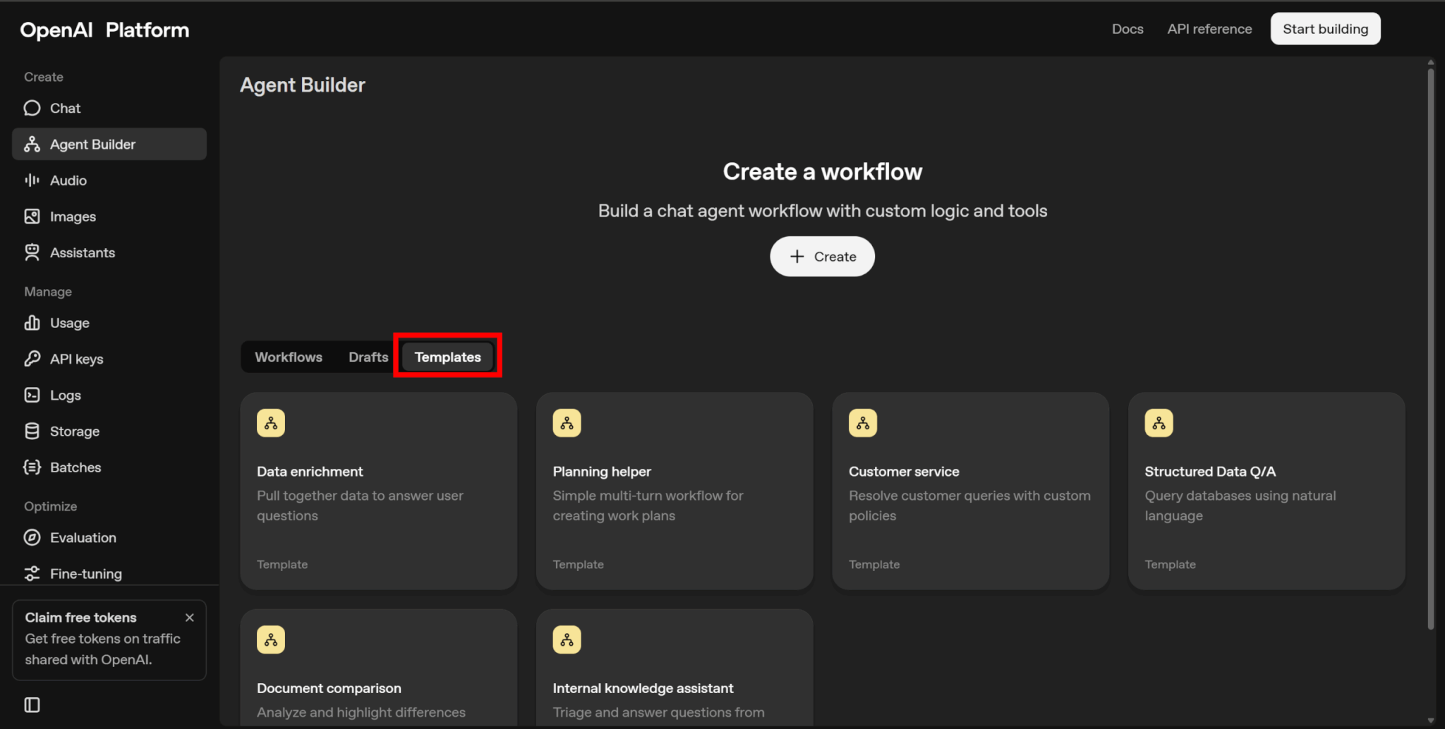 まずはOpenAI Platform内のAgent Builderにアクセスしましょう。