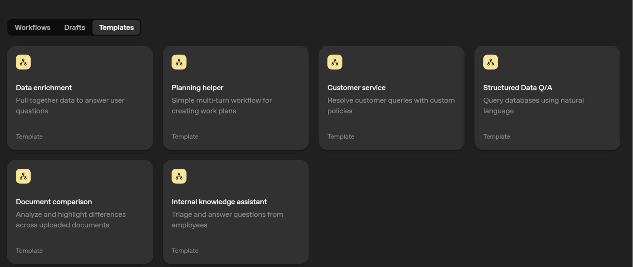 どのテンプレートから始めるかは、構築したいエージェントの目的に依存します。