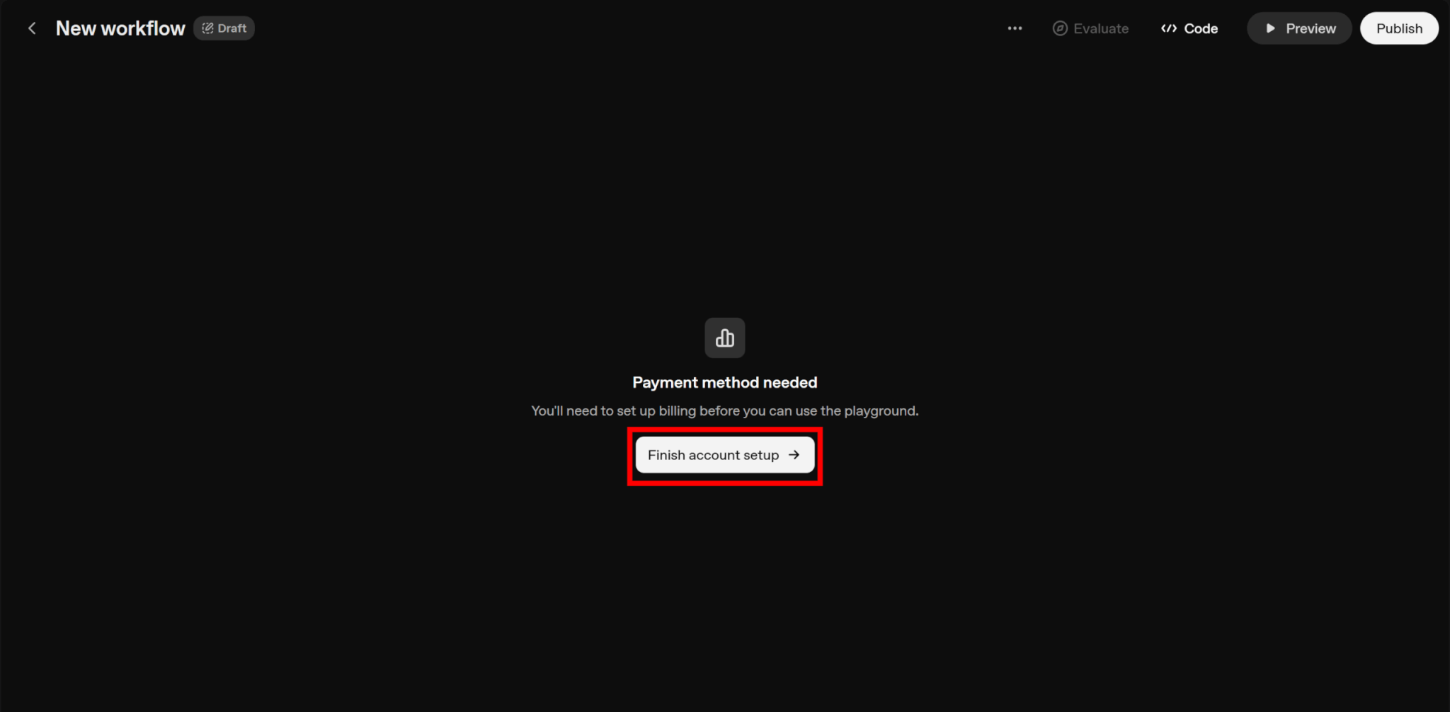 しかし、エージェント内でAIモデルを呼び出す場合にはAPI料金が必要となるため、支払い方法を設定しておく必要があります。