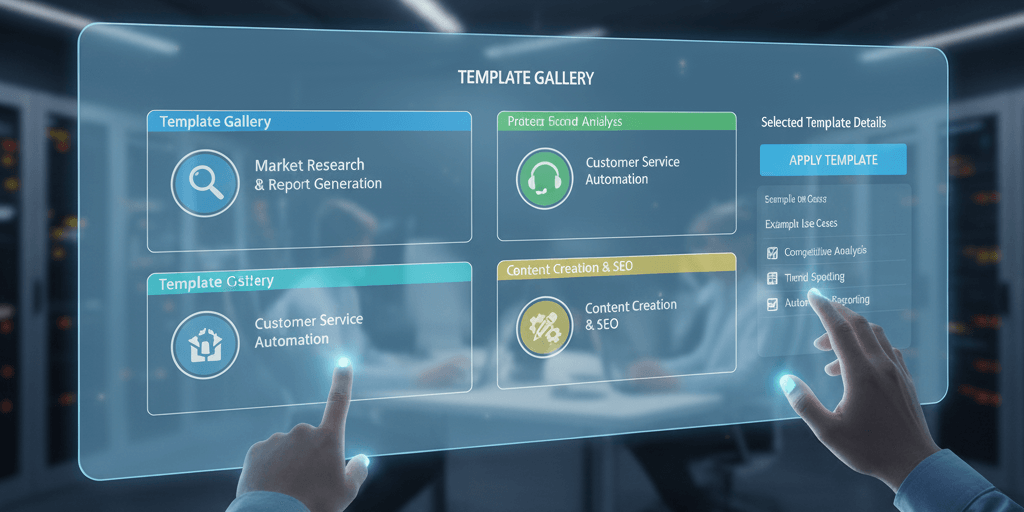 テンプレートにはFAQボットやサポートアシスタントなど一般的なユースケース向けのものが用意されており、構造を学びながら素早くプロトタイプを作成できます。