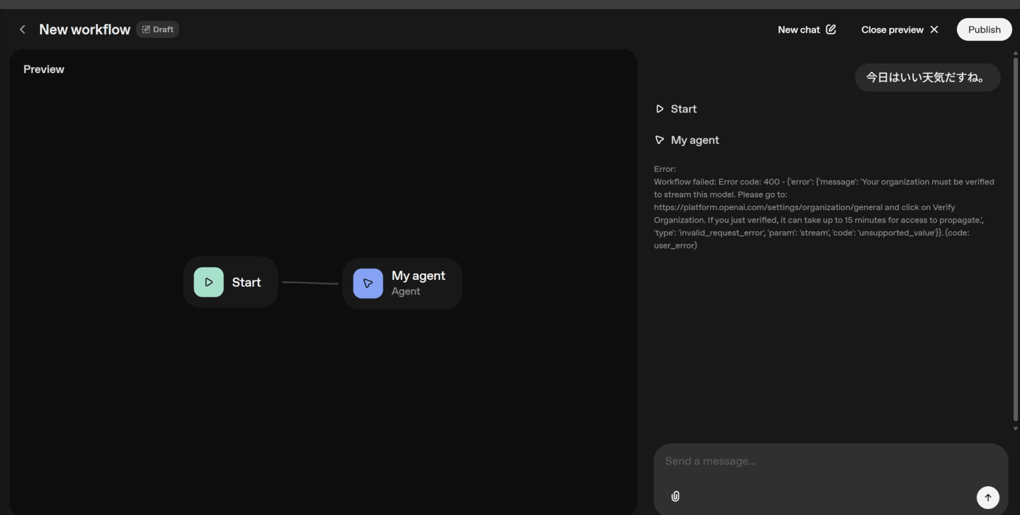 そのため、ChatGPTの有料プランに加入しているユーザーであっても、Agent Builderで作成したワークフローを実行する際にはAPI料金の支払いが必要となります。