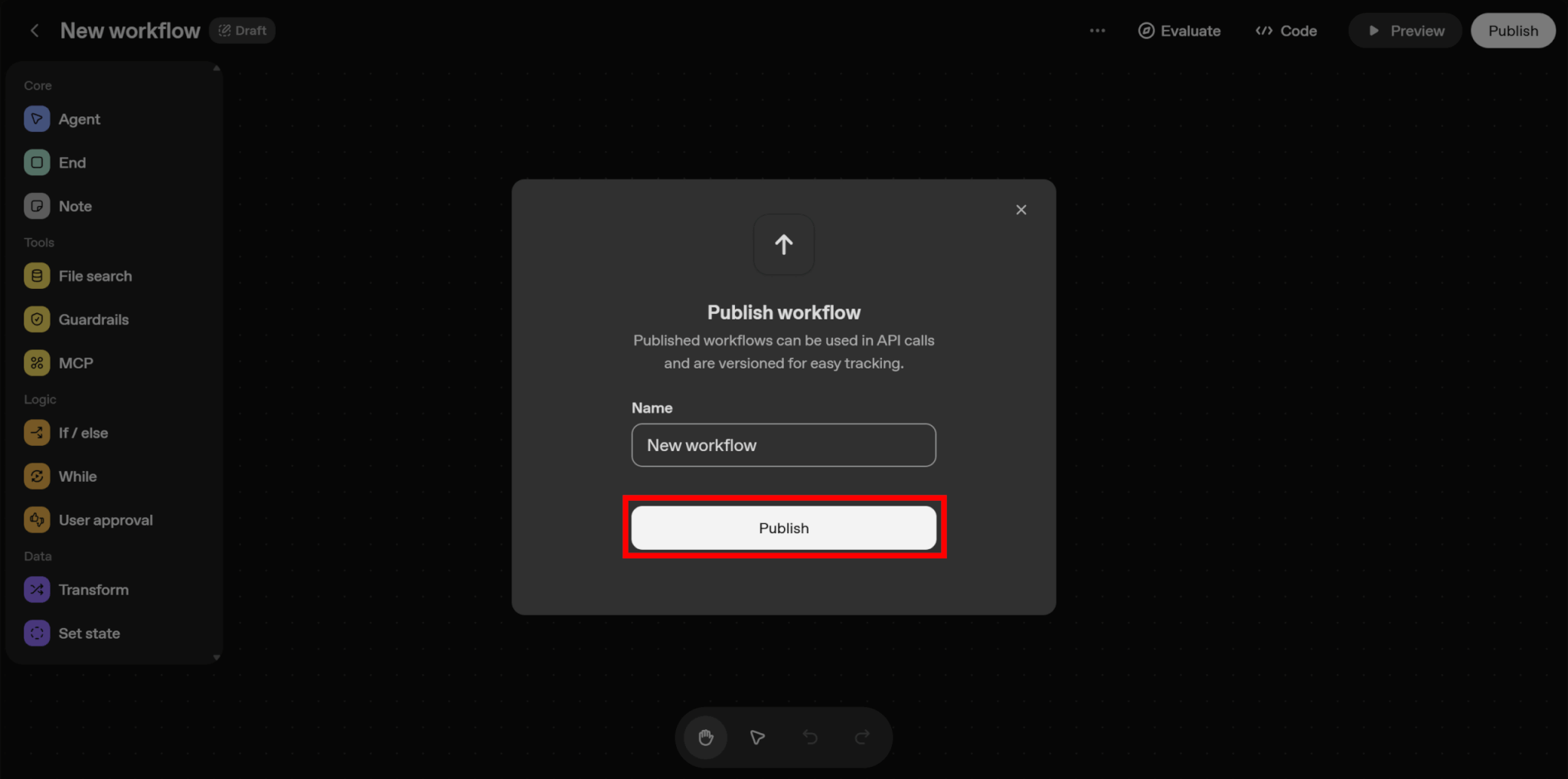 ワークフローが完成し、納得のいく動作ができるようになればワークフローを公開しましょう。