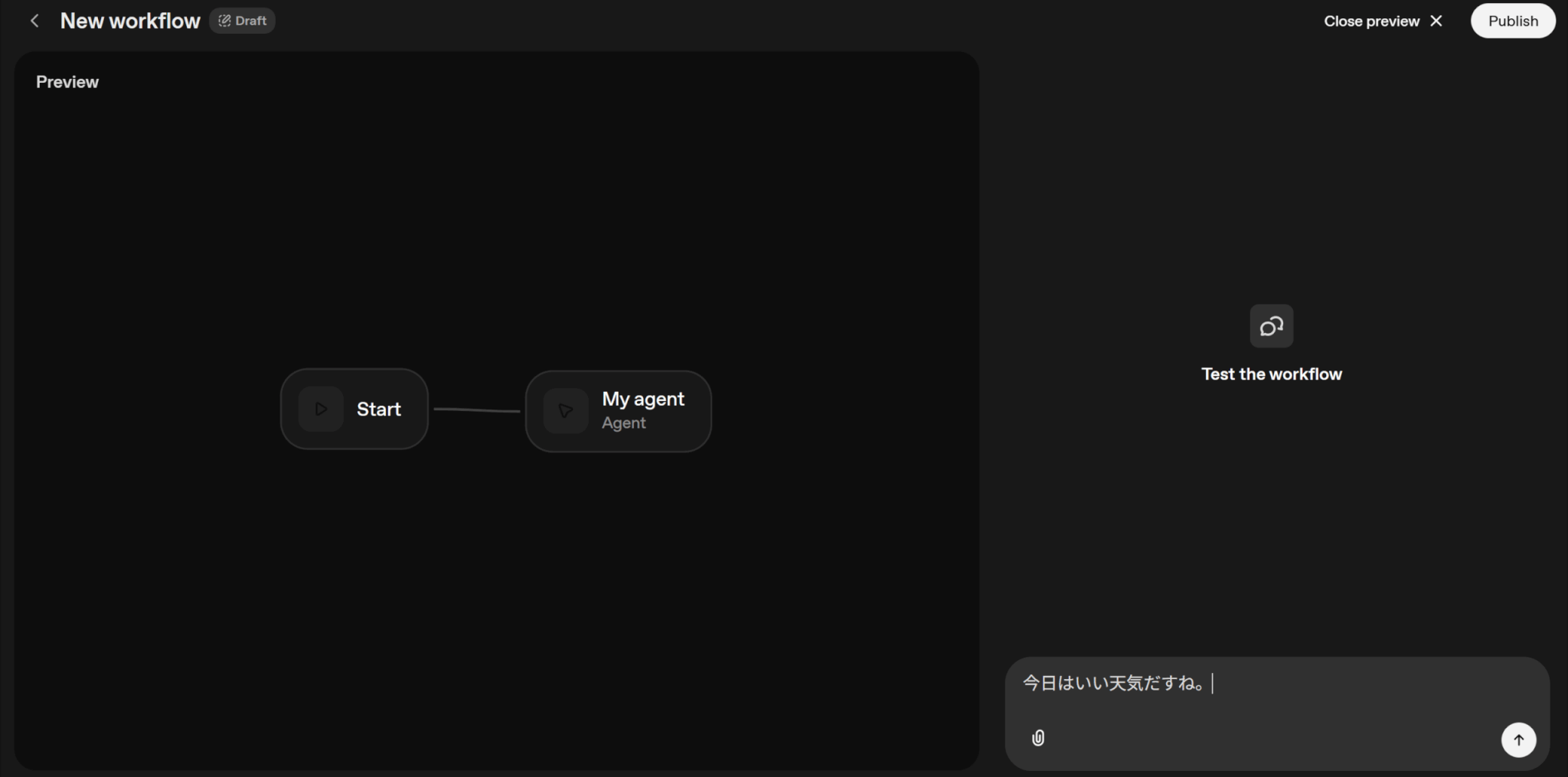 プレビュー画面では実際に作成したエージェントと対話ができるため、動作をすぐに確認可能です。
