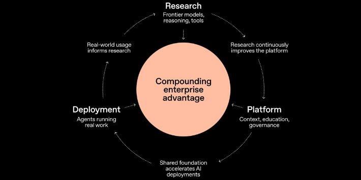 OpenAI Frontierは、自律的に業務を完遂する「AI同僚(エージェント)」を、組織の一員として安全に運用するための基盤です。役割や業務内容を深く理解させ、人間と同じ方法で働くチームメイトを育てるための環境を提供します。