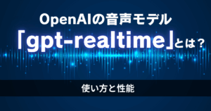 OpenAIの音声モデル「gpt-realtime」とは?使い方と性能 gpt-realtimeとは、OpenAIが新たに発表した音声モデルです。 音声の入力に対し、テキスト化をすることなく直接音声を生成する方式を取ることにより、以前のモデルと比べて低遅延なやり取りが可能となりました。 この記事では、gpt-realtimeの概要や性能、使い方について解説します。 なお、この記事ではPlaygroundを使用した方法をご紹介します。