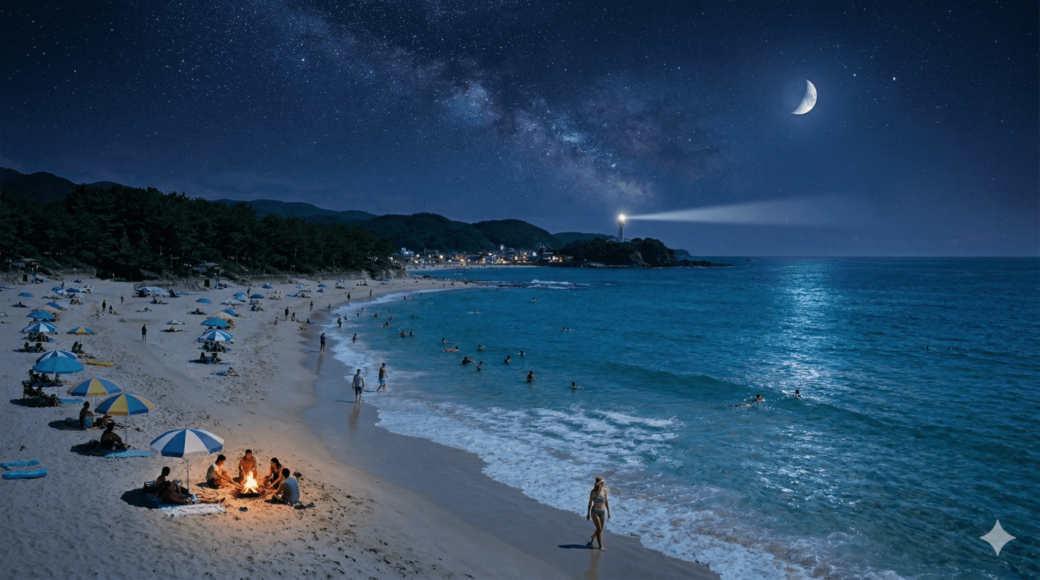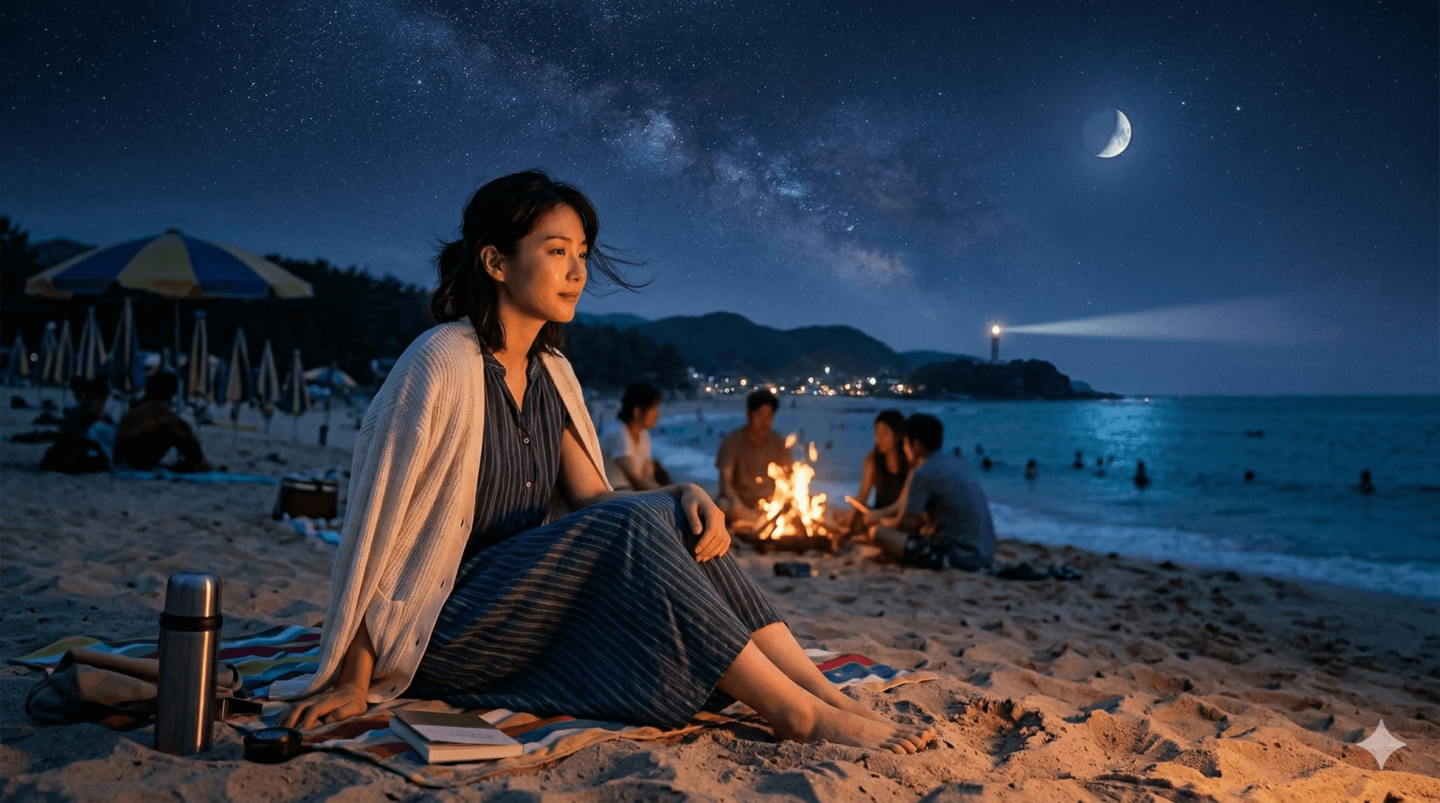 「a young woman walking slowly through a neon-lit Tokyo street at night, cinematic wide shot, shallow depth of field, light rain falling(夜のネオンが輝く東京の通りを、若い女性がゆっくり歩く。映画的なワイドショット、浅い被写界深度、小雨が降っている)」