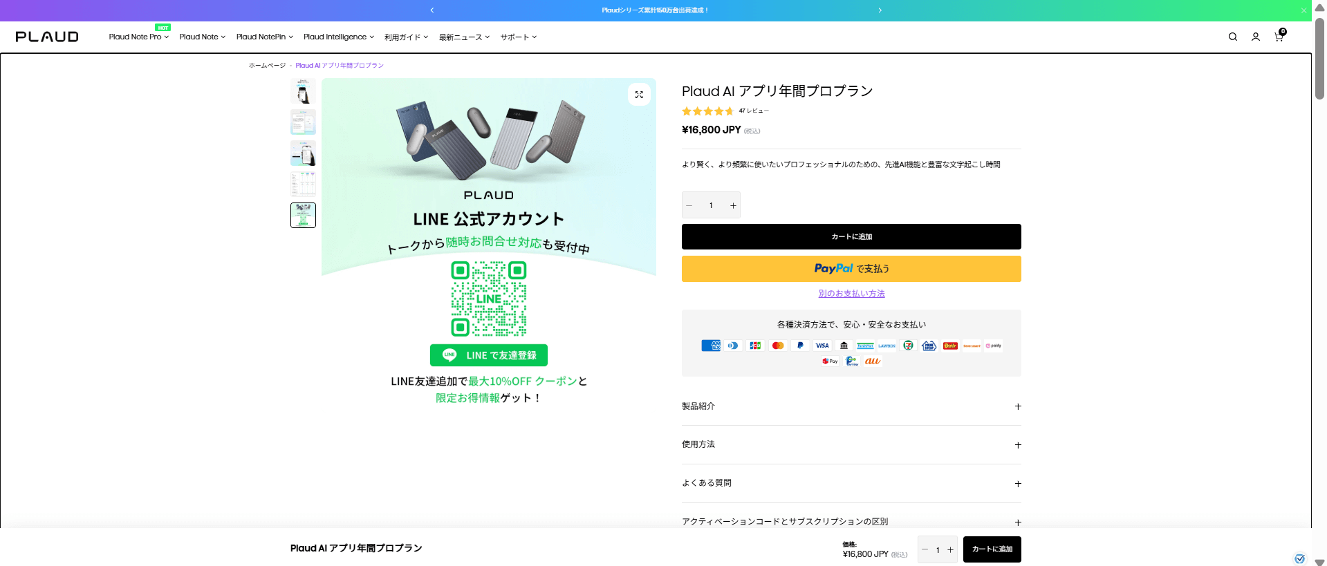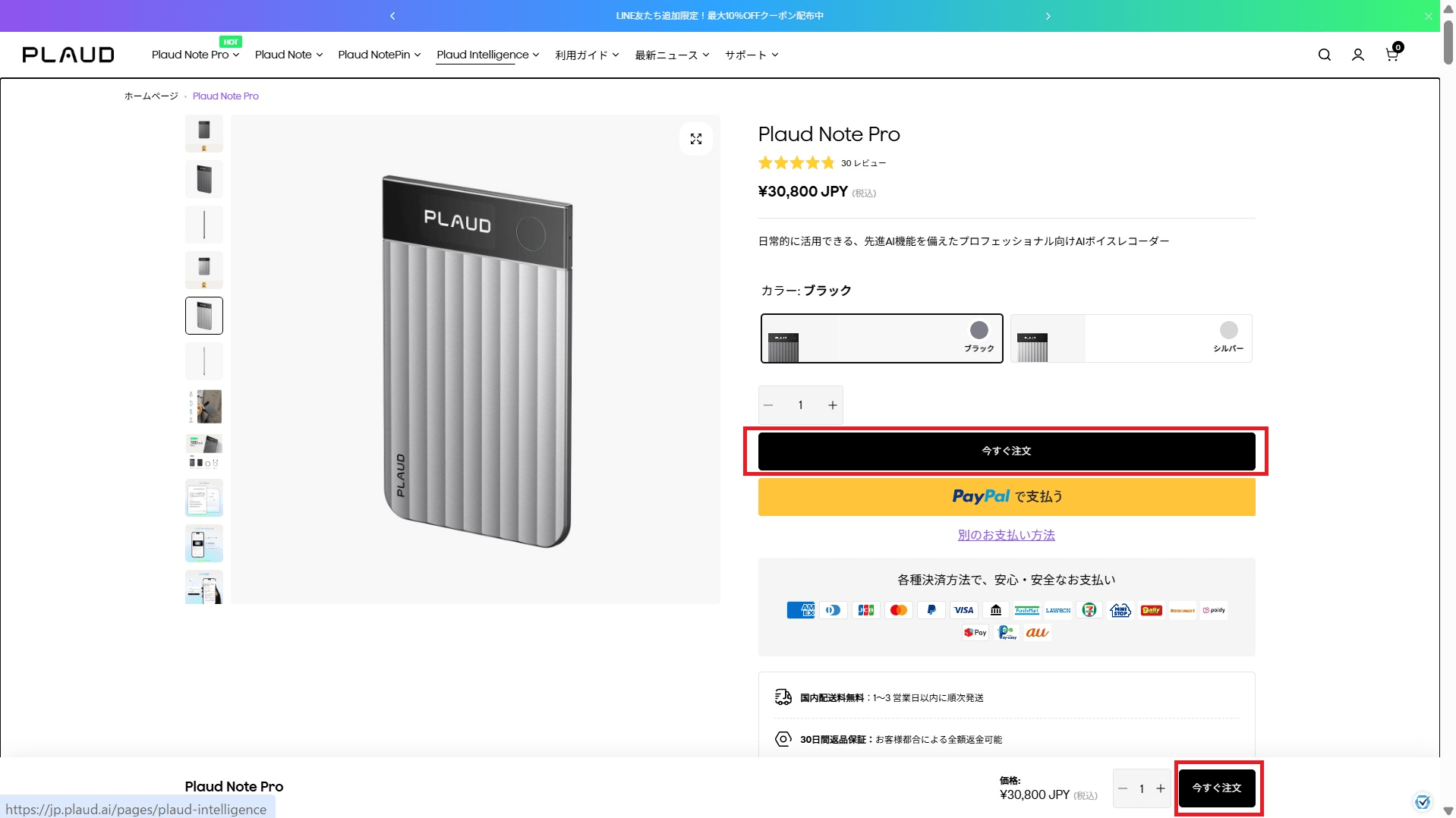 Plaud Note Proを公式サイトで購入する場合