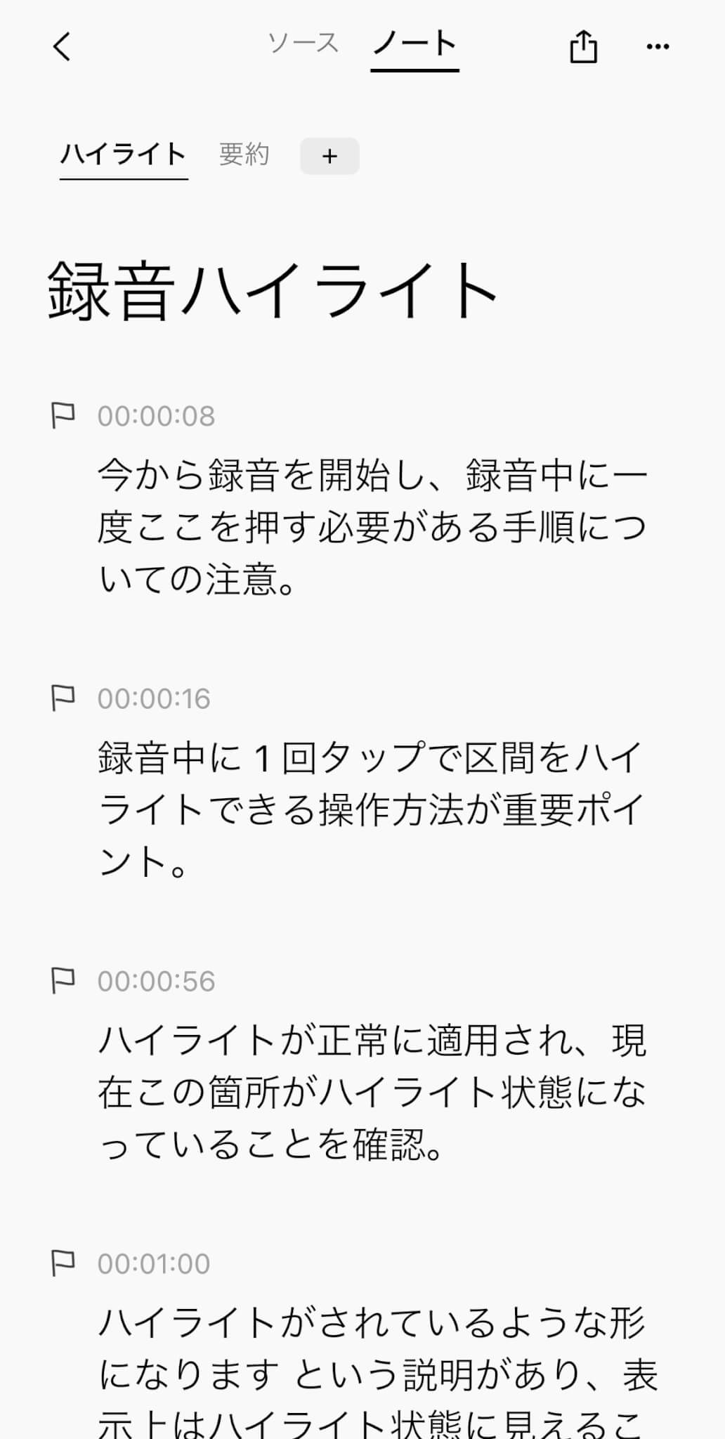 実際に使ってみて特に便利だと感じたのは、録音データをアプリで確認する際、全文を文字起こししなくてもハイライト部分を即座に確認できる点でした。