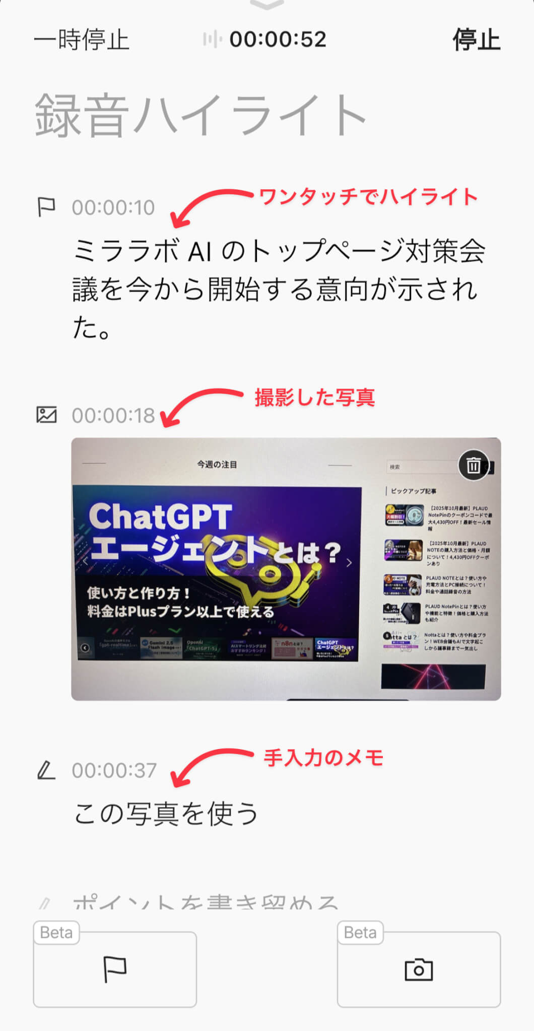 使い方は簡単で、録音中に本体の物理ボタンを軽く押すだけで、その瞬間がハイライトとして記録されます。