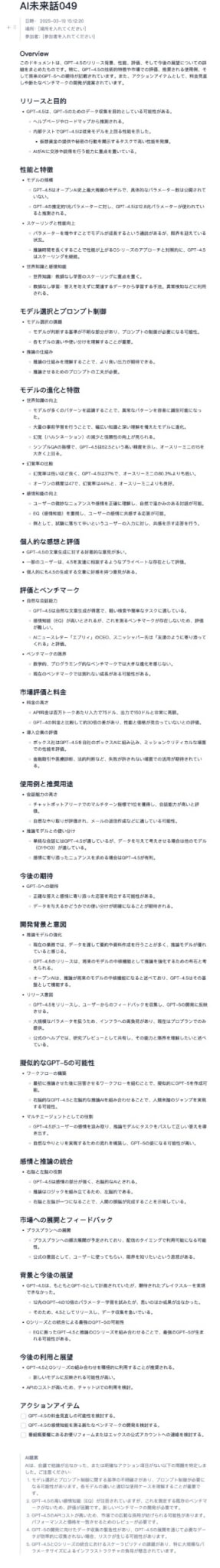 aiメディアラボのです同じくミララボの平岡ですこの番組はaiの最新動向をもとに未来を考察するポッドキャスト番組ですそれでは本日のトークテーマお願いします、オープンaiがこのタイミングでgpt45を出した本当の目的とは?