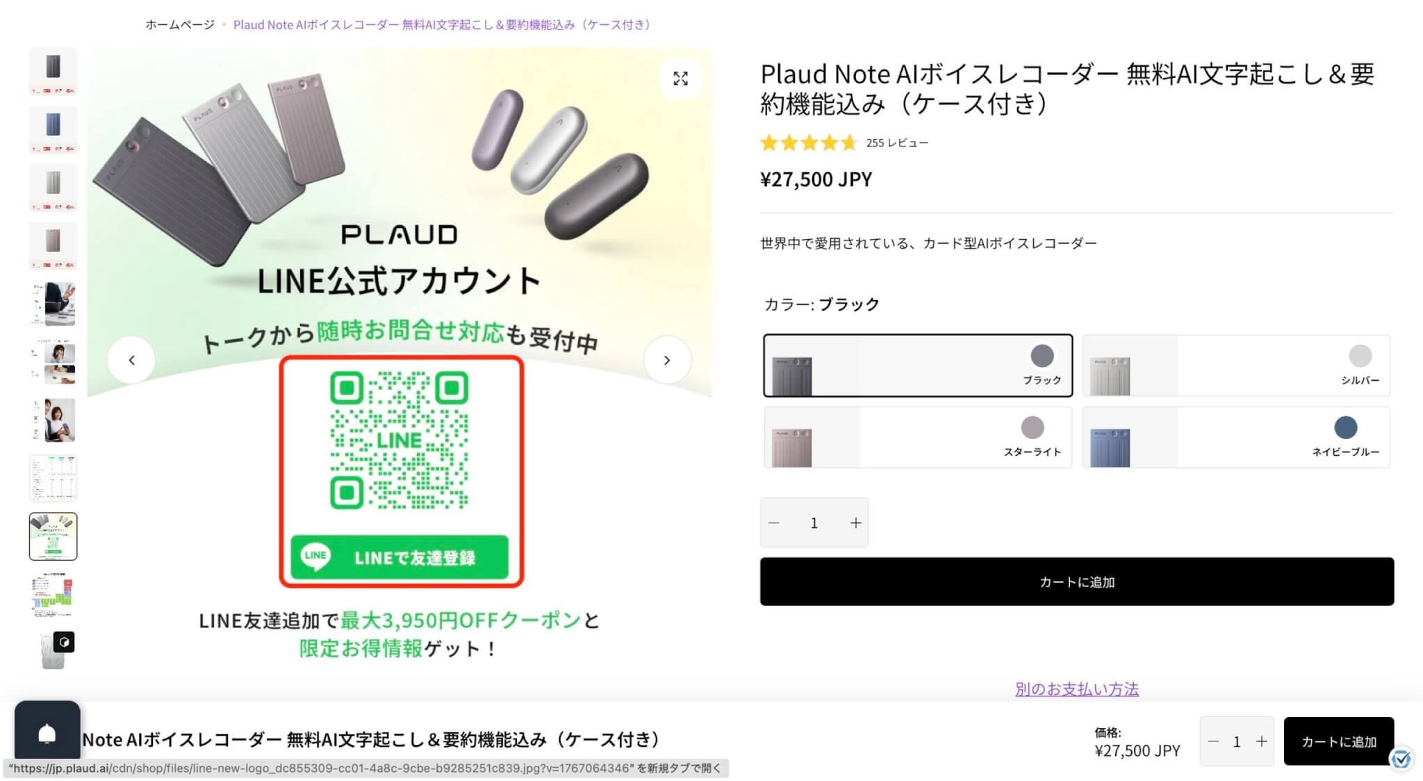 PLAUD公式サイトから、PLAUD LINE公式アカウントのQRコードを表示して、スマホで読み込みましょう。