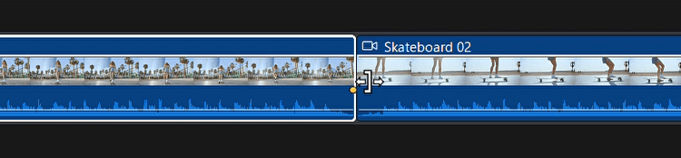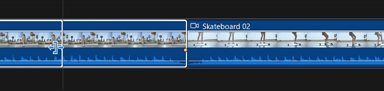 1つ目の方法は、タイムライン上でトリミングするクリップを選択し、終点もしくは始点にポインターを当て、そのままドラッグしてトリミングする方法です。