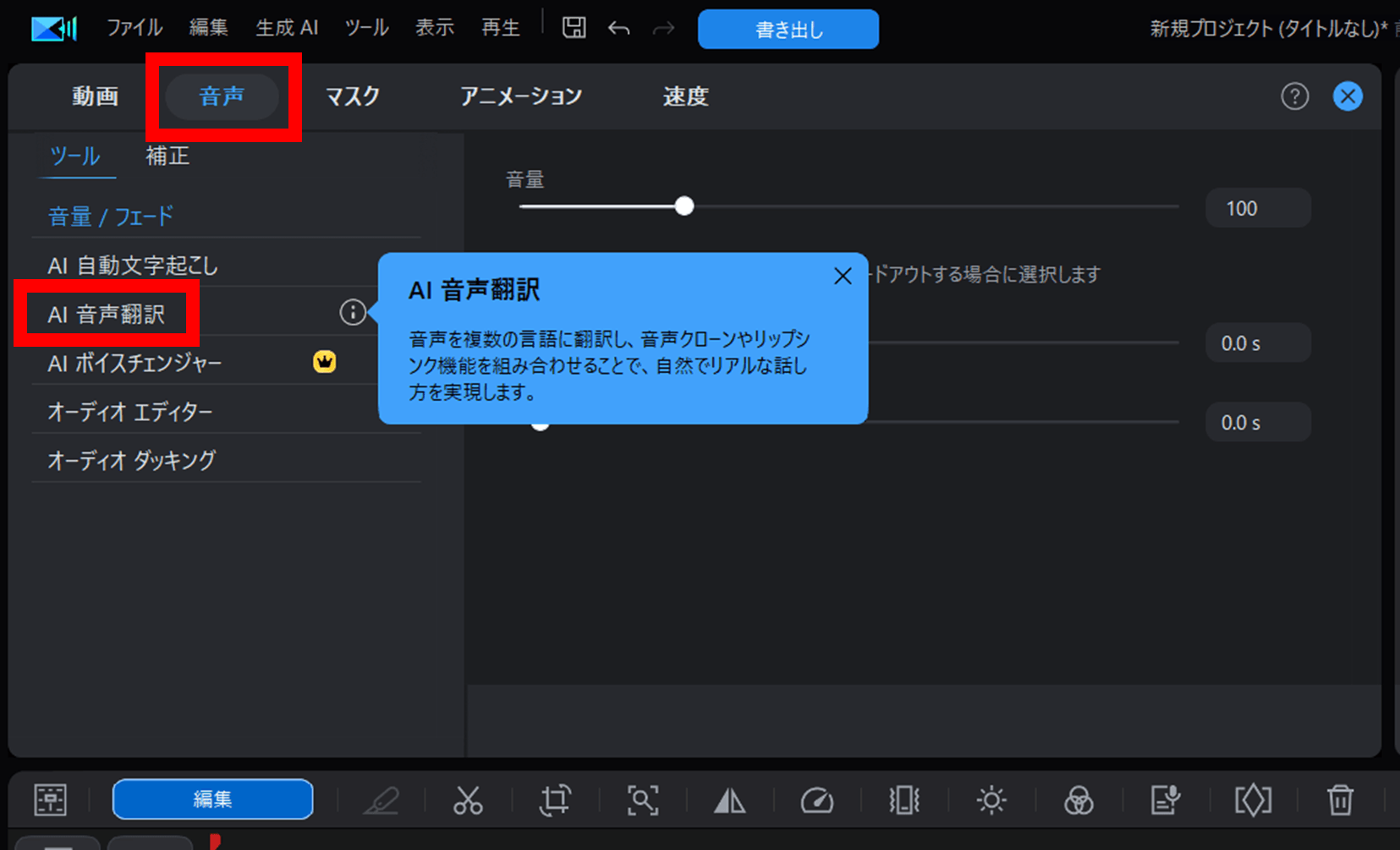 AI機能を活用することで、複雑な編集作業も簡単に行えます。
