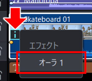 エフェクトを適用したクリップに「i」のアイコンが表示されたらクリックし、編集するエフェクトを選択します。