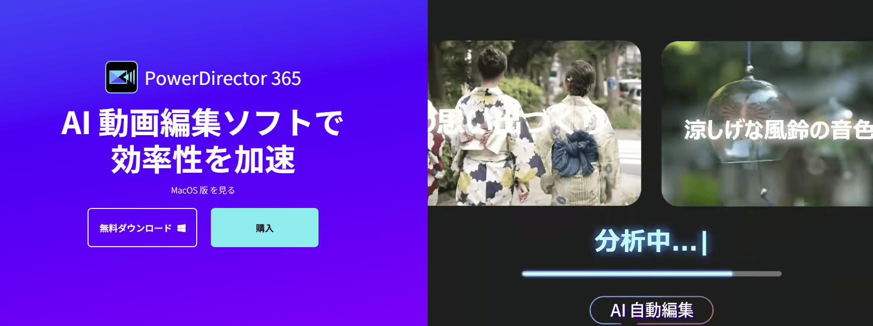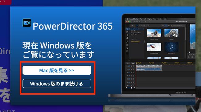 2026年4月現在、Windowsでは買い切り版の「PowerDirector 2026」とサブスク版の「PowerDirector 365」が提供されています。一方、MacOSでは、サブスク版の「PowerDirector 365」が提供されています。