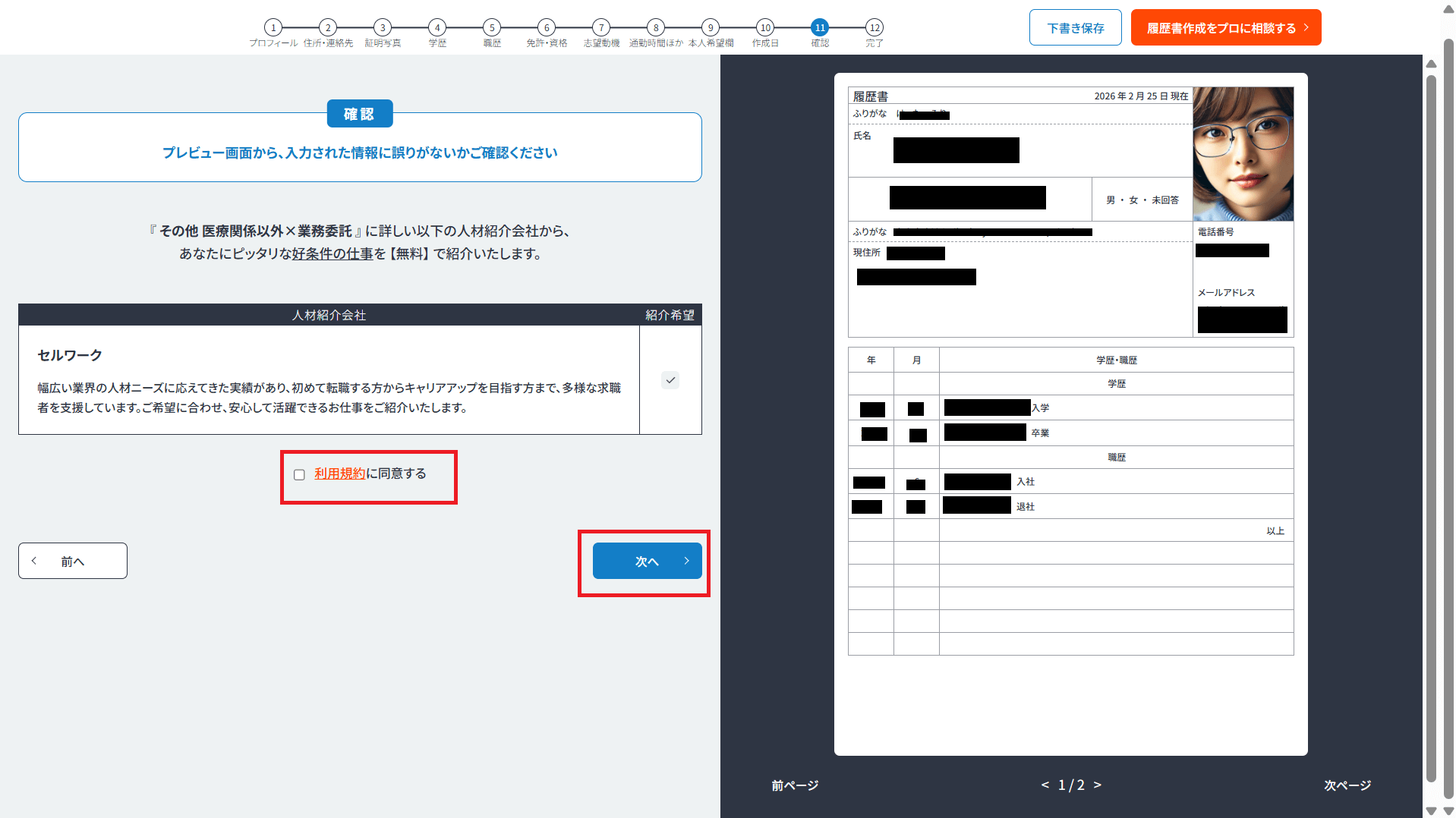 また、作成後に専門スタッフへ相談できる仕組みがあるため、書類の完成度を高めたい人にも適しています。