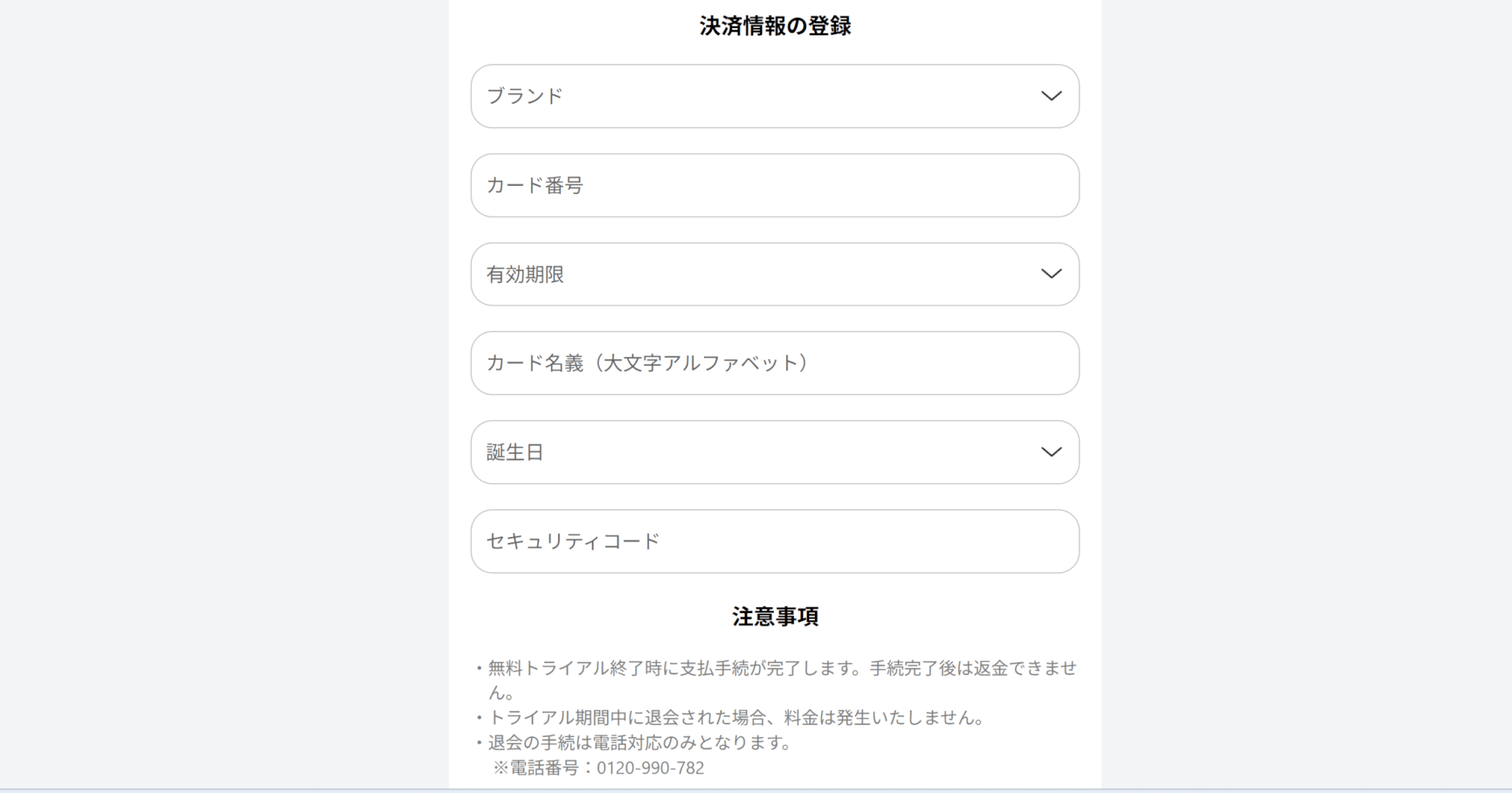 無料トライアルを開始するにはクレジットカード情報を登録する必要があり、トライアル期間を終了した翌日に自動で課金が開始されます。そのため、もし継続を希望しない場合は、期間終了前に退会をしなければなりません。