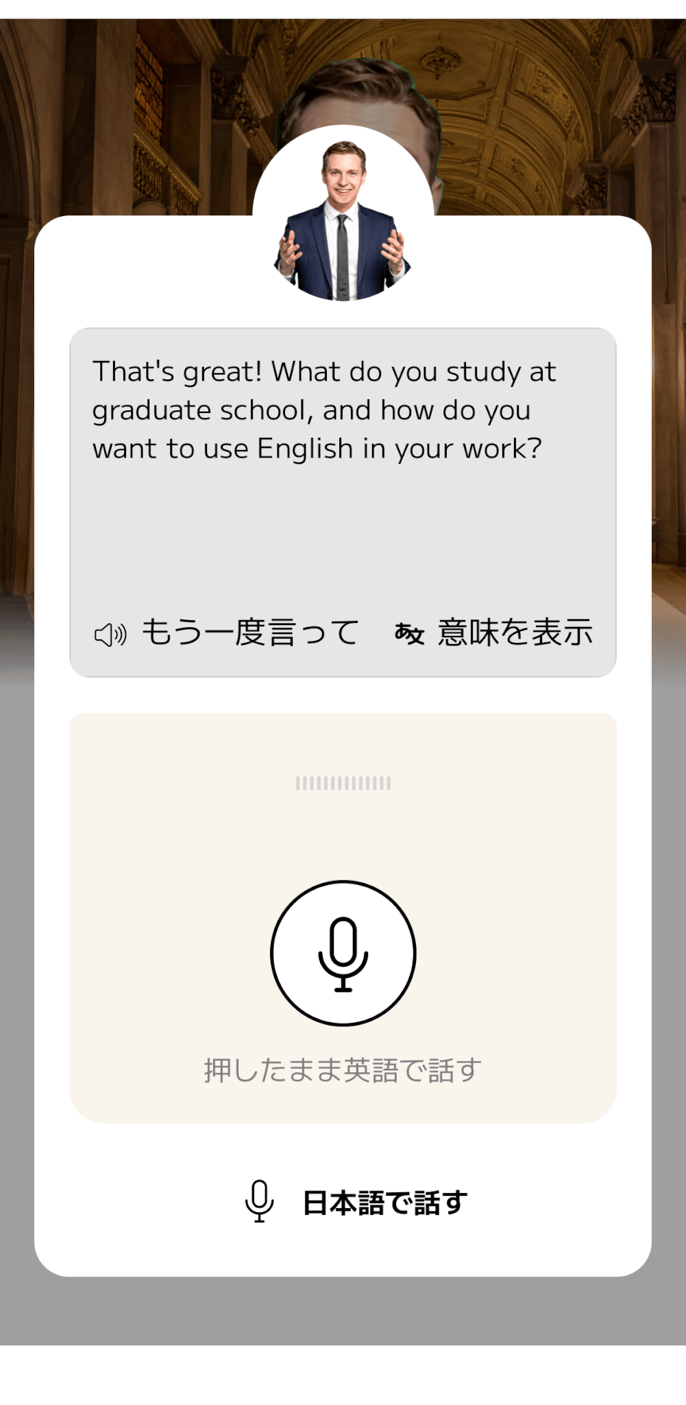 また、トークレッスンはユーザーの語彙空間を作ることを目的としているため、日本語で回答することもできるようになっています。
