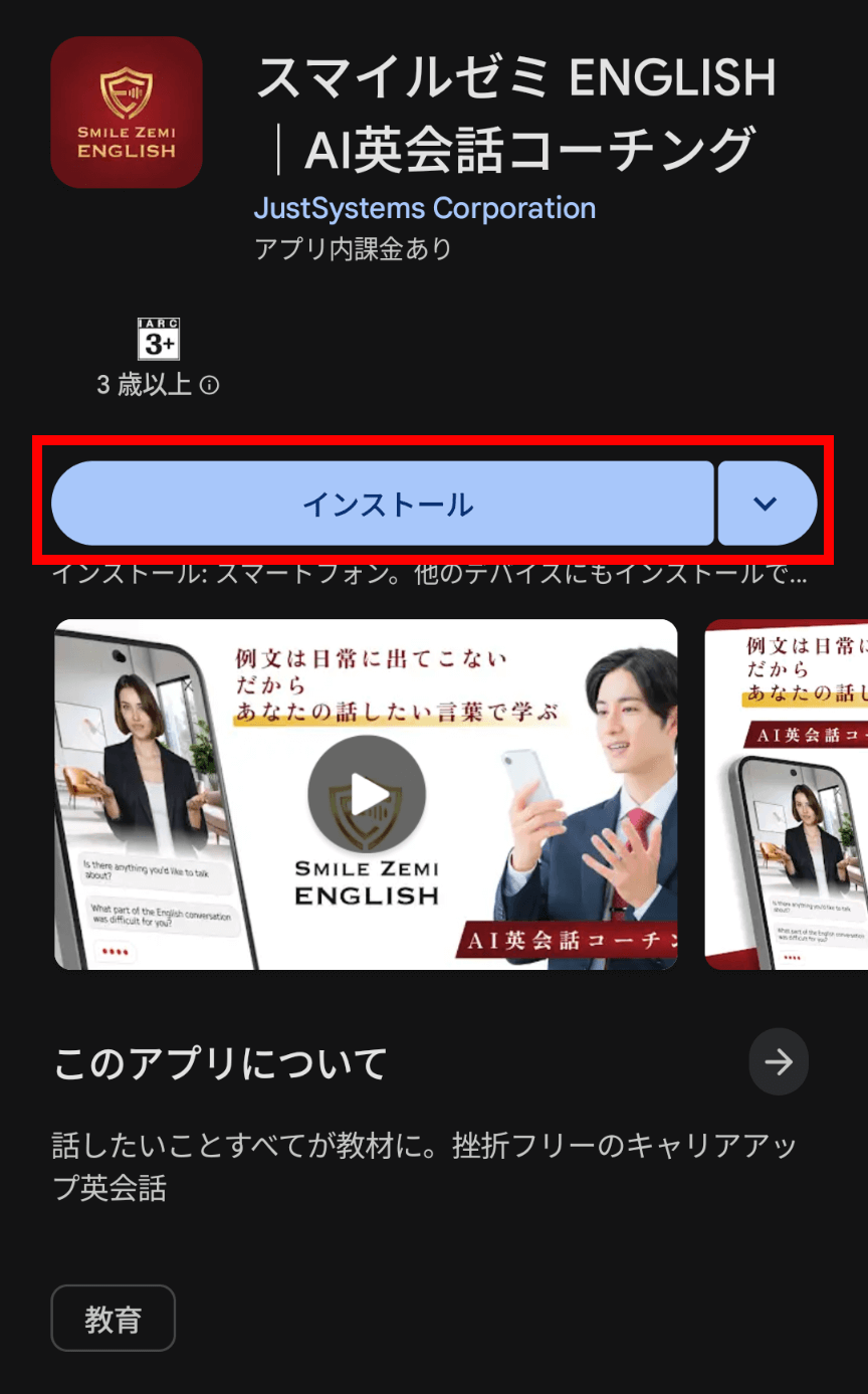 スマイルゼミ ENGLISHとは、AIとの英会話を通じて練習する例文をユーザーに合わせて最適化することにより、効率的に英語を学べるようにした英会話学習アプリです。