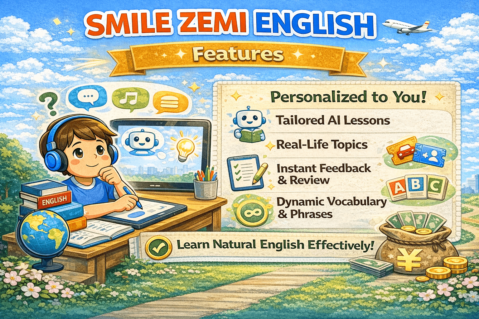 AIが個人に最適化された英語教材を生成するため、従来の例文学習とは異なり、実際に使える英語を効率よく身につけられます。