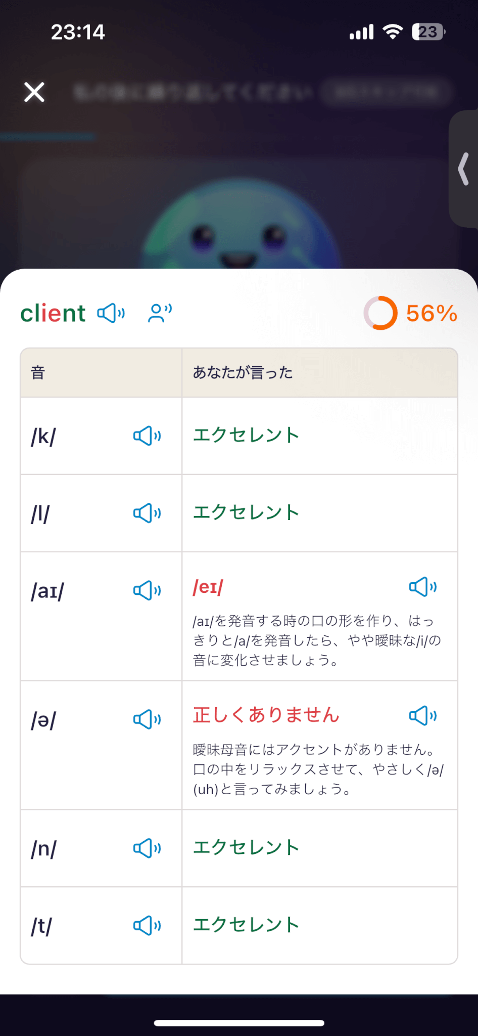 また、数値での把握だけでなく具体的な口の動きまでわかる丁寧なフィードバックがあり、独学では難しい発音のメカニズムを体系的に理解できるため、着実にネイティブの音に近づけます。