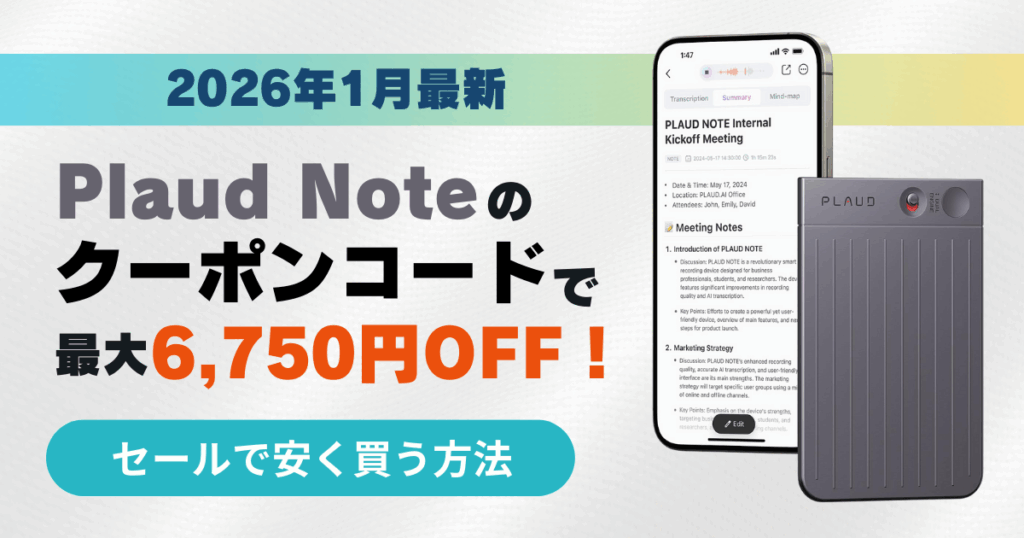 【2026年1月最新】Plaud Noteのクーポンコードで最大6,750円OFF!セールで安く買う方法