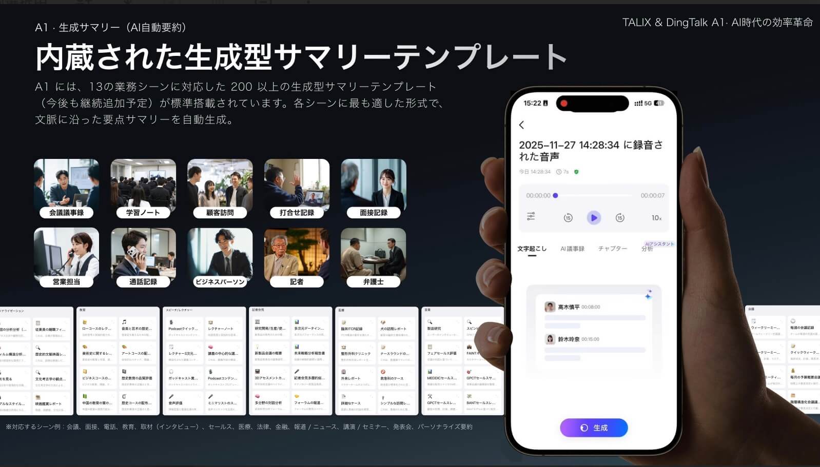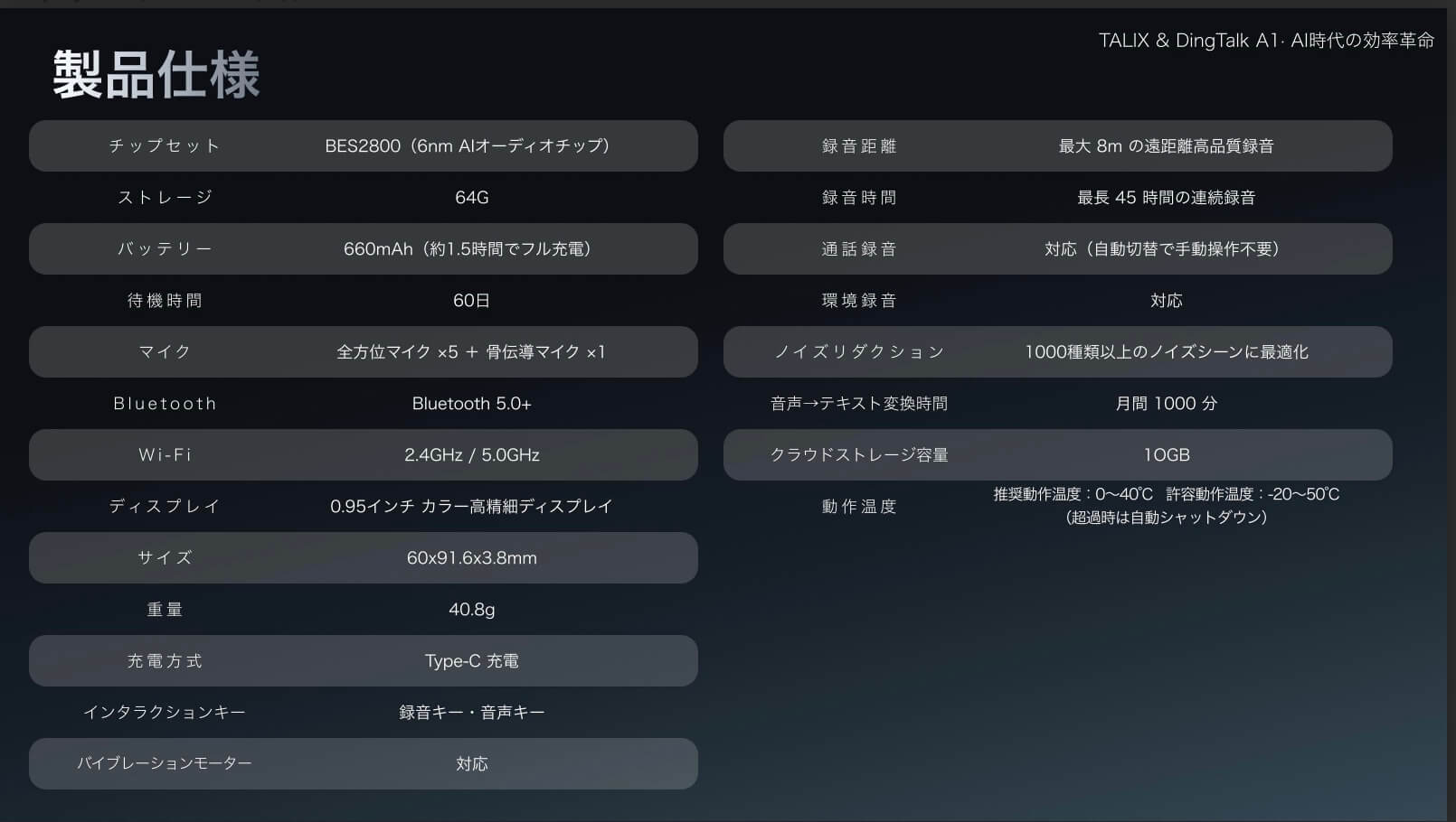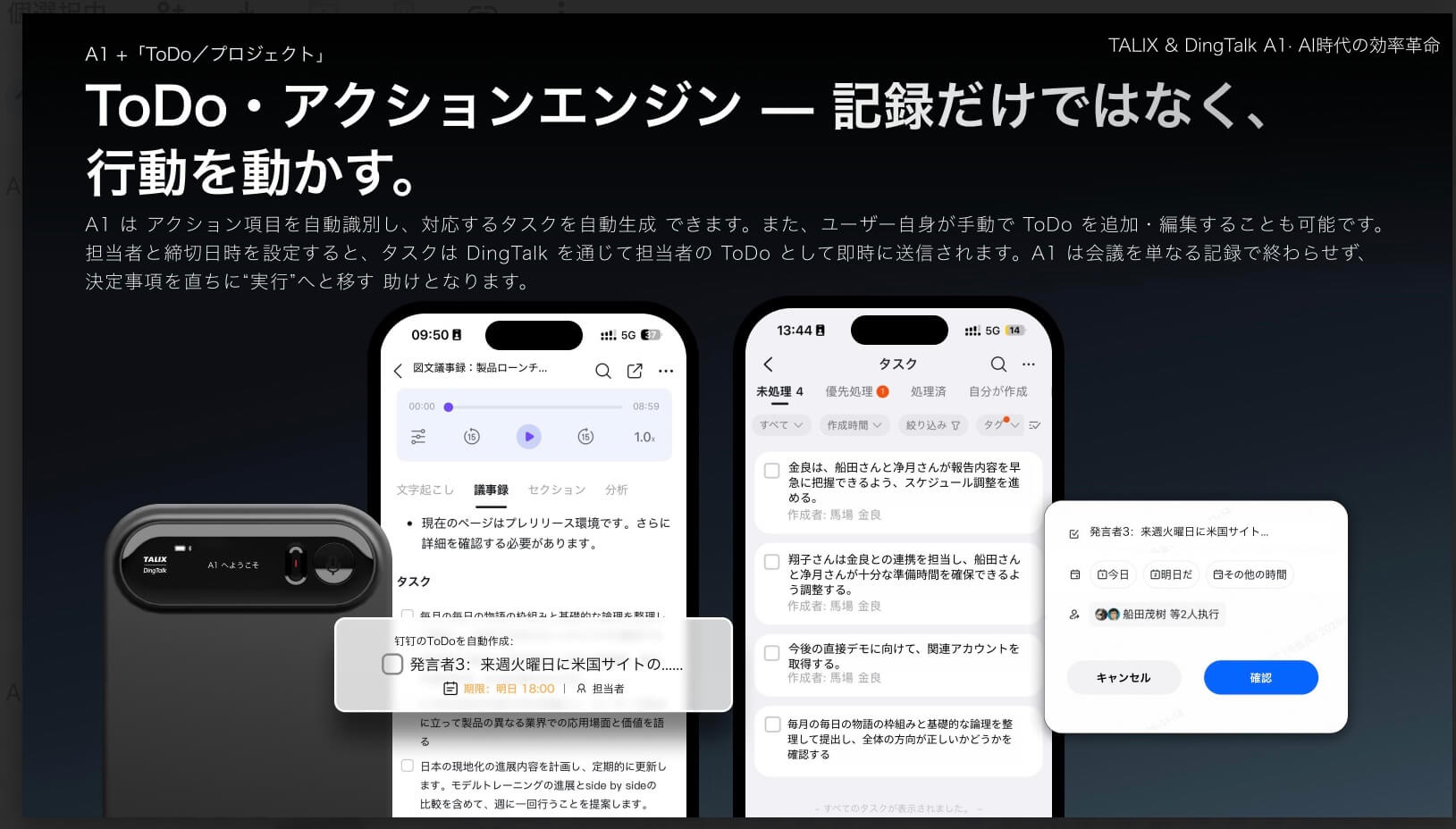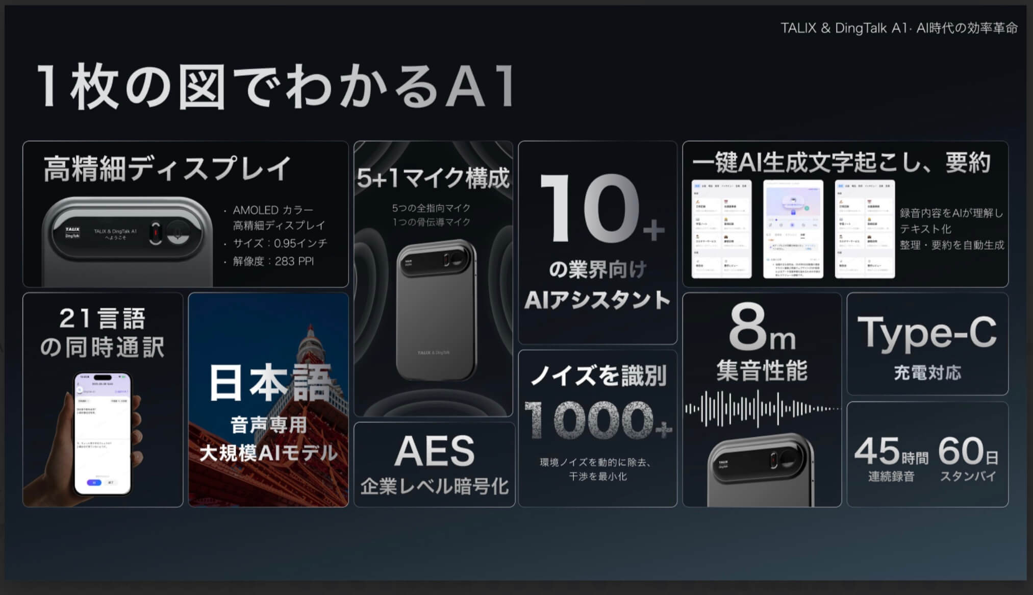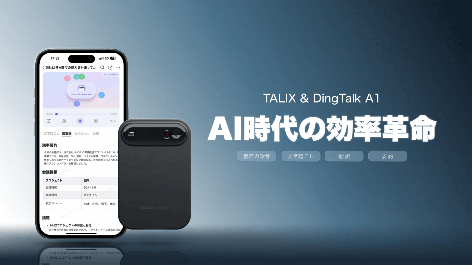 安全性と使いやすさを両立しながら、会議・商談後の資料作成や顧客対応を効率化したい企業にとって、TALIX & DingTalk A1はぴったりの選択肢と言えるでしょう。