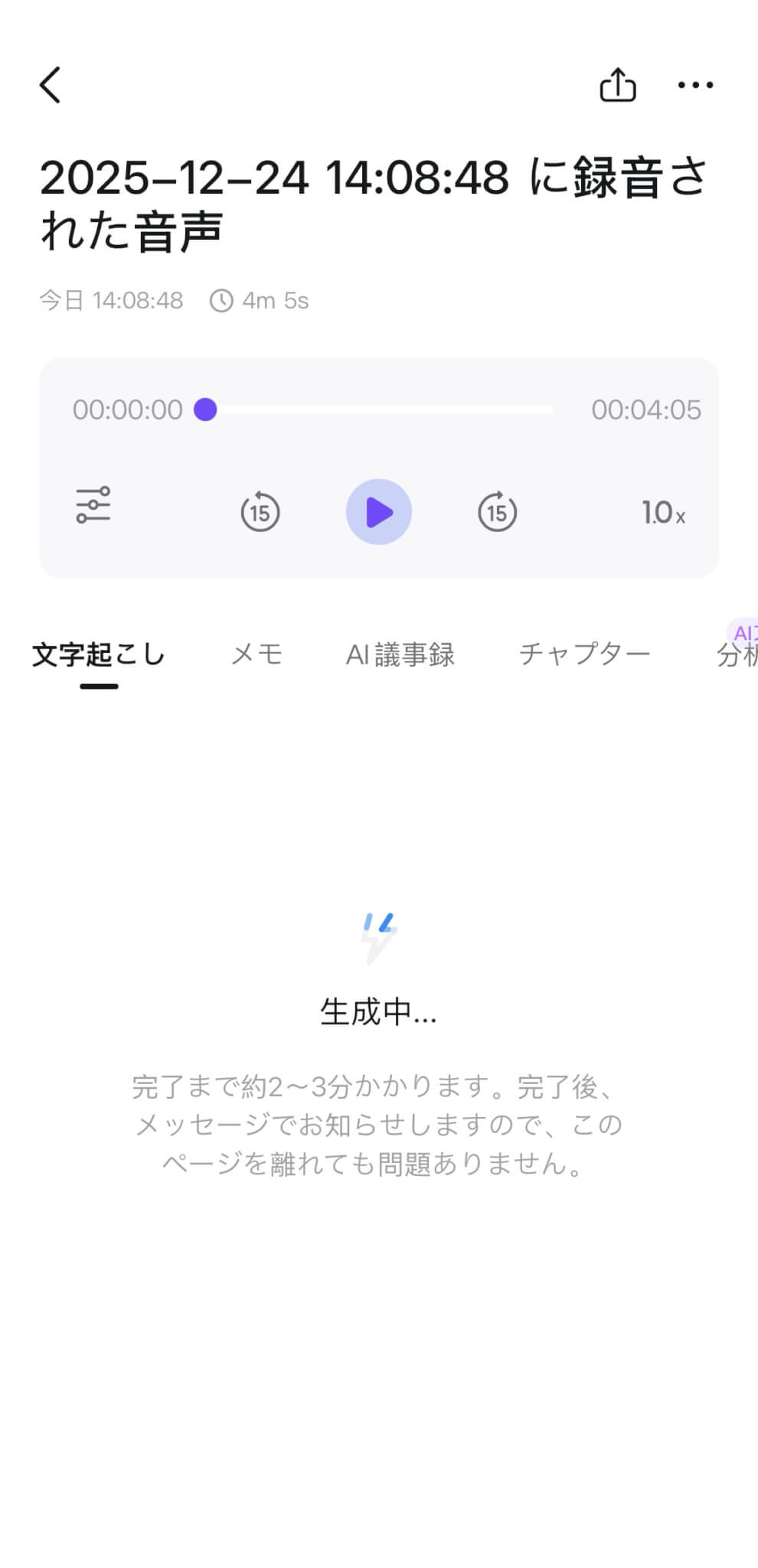 録音を開始すると録音画面に喋った内容がリアルタイムで表示されていきます。