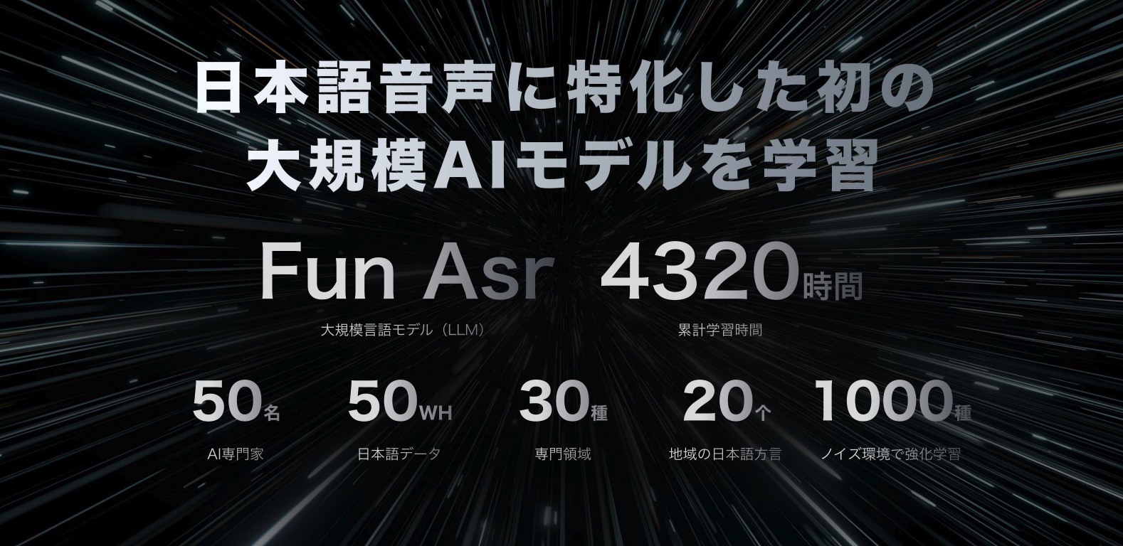 このモデルは、500万時間以上の日本語音声コーパス(音声データベース)を活用し、さらに50名のAI言語専門家が継続的なトレーニングを重ねて開発されました。そのため、30以上の専門分野に応じた辞書を最適化しているほか、20種類以上の地域アクセントにも対応しており、日本語認識の精度は非常に高いレベルに達しています。