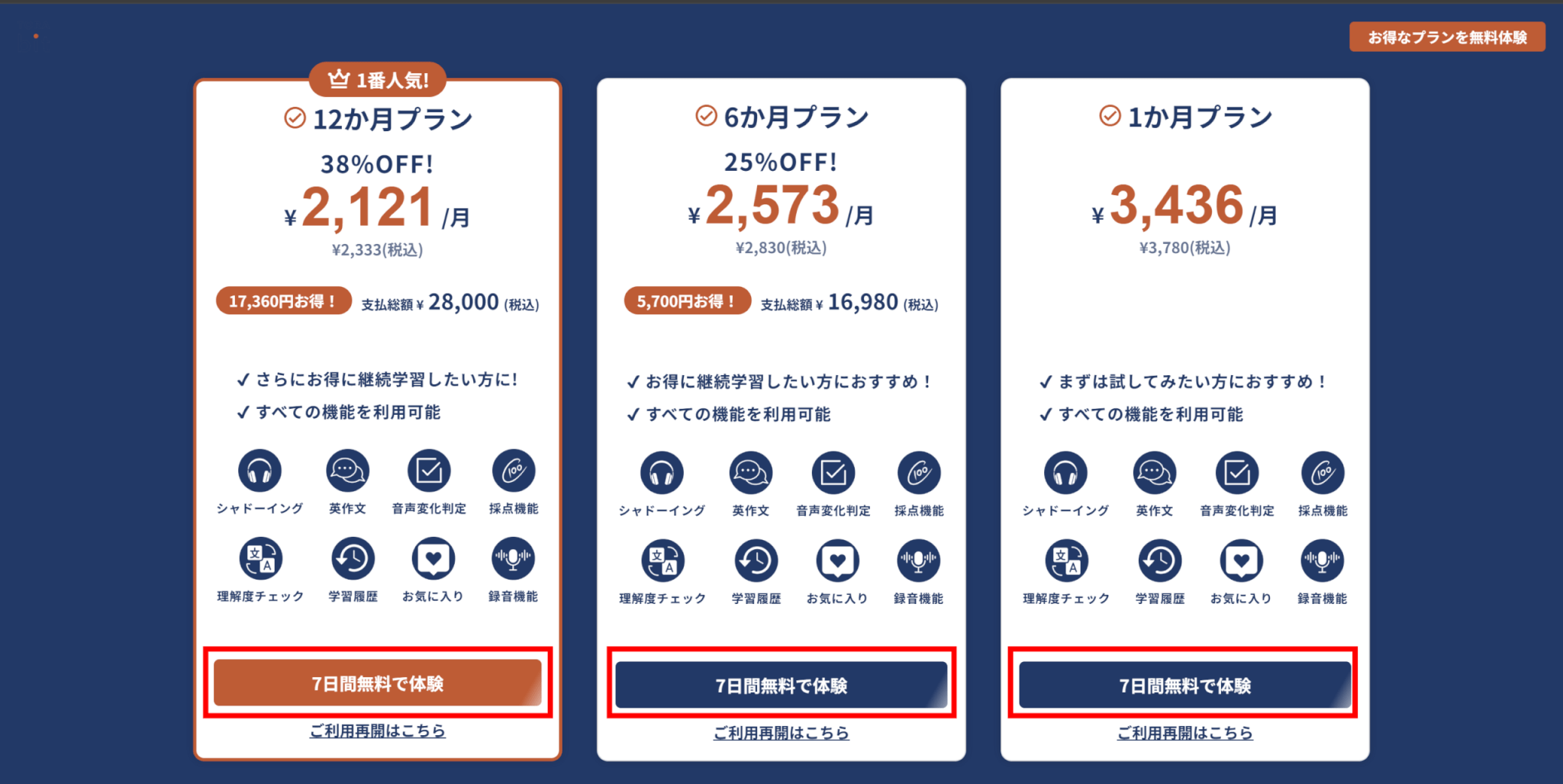 また、英会話学習においては継続が何よりも重要であるため、続けやすさを忘れずに確認しておきましょう。