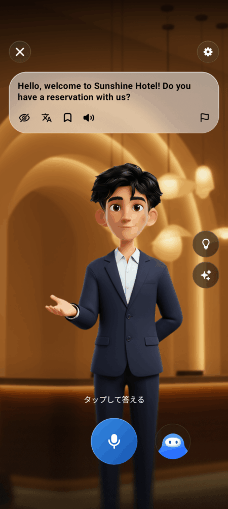 学習の中核はAIとのロールプレイであり、ユーザーの発言内容に合わせてAIが自然に応答するため、リアルな会話のラリーが続きます。