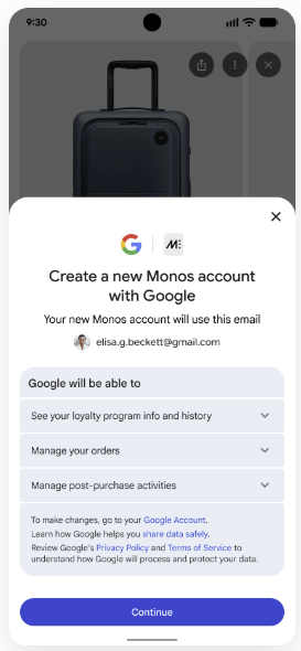 Identity Linkingを実装すると利用者はAIサーフェスから、事業者側に存在する自身のアカウントにログインしたり、ポリシーへの同意などの操作に対応しています。OAuth 2.0をベースにしているため、アカウント連携後の操作は「事業者がユーザーに対して許可した範囲」のみに限定される仕組みです。これにより、AIエージェントが自由に操作するのではなく、事業者が許可した操作に限定した形で取引を成立させられます。