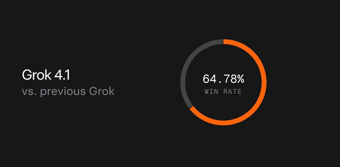 公開前には11月1日から14日にかけ、grok.comやXなどで段階的なサイレントロールアウトが実施されました。この期間に行われたブラインド比較の結果、Grok 4.1は旧モデルより64.78%の確率で支持され、応答品質の向上が実証されています。