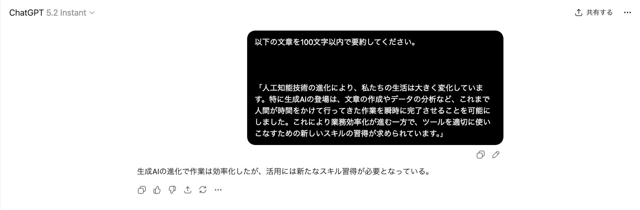 事前に回答例やテンプレートを準備する必要がないため、思いついた指示をそのまま入力してすぐに結果を得られます。