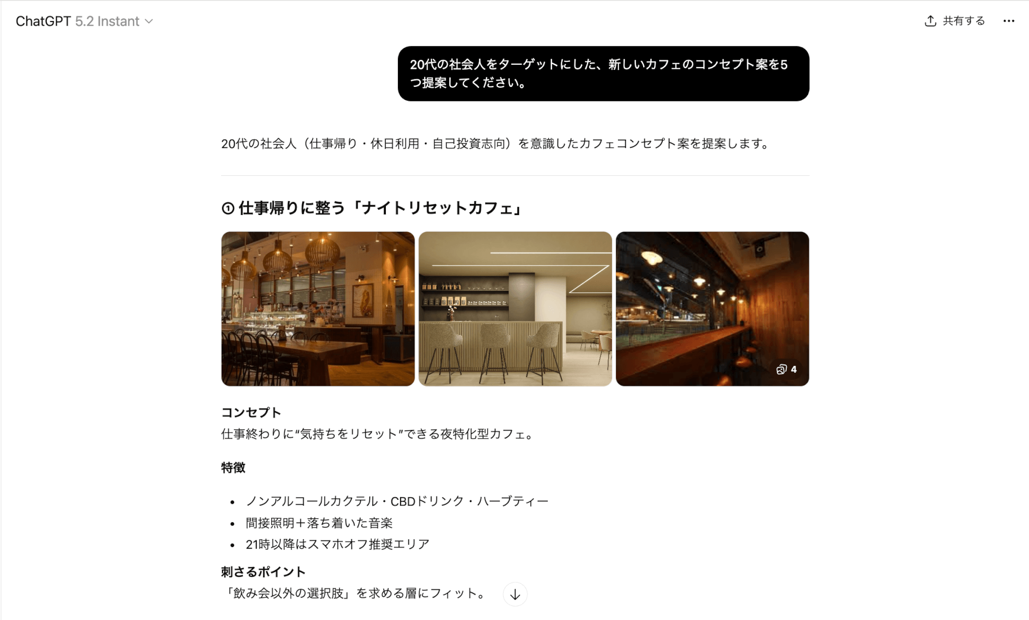 20代の社会人をターゲットにした、新しいカフェのコンセプト案を5つ提案してください。